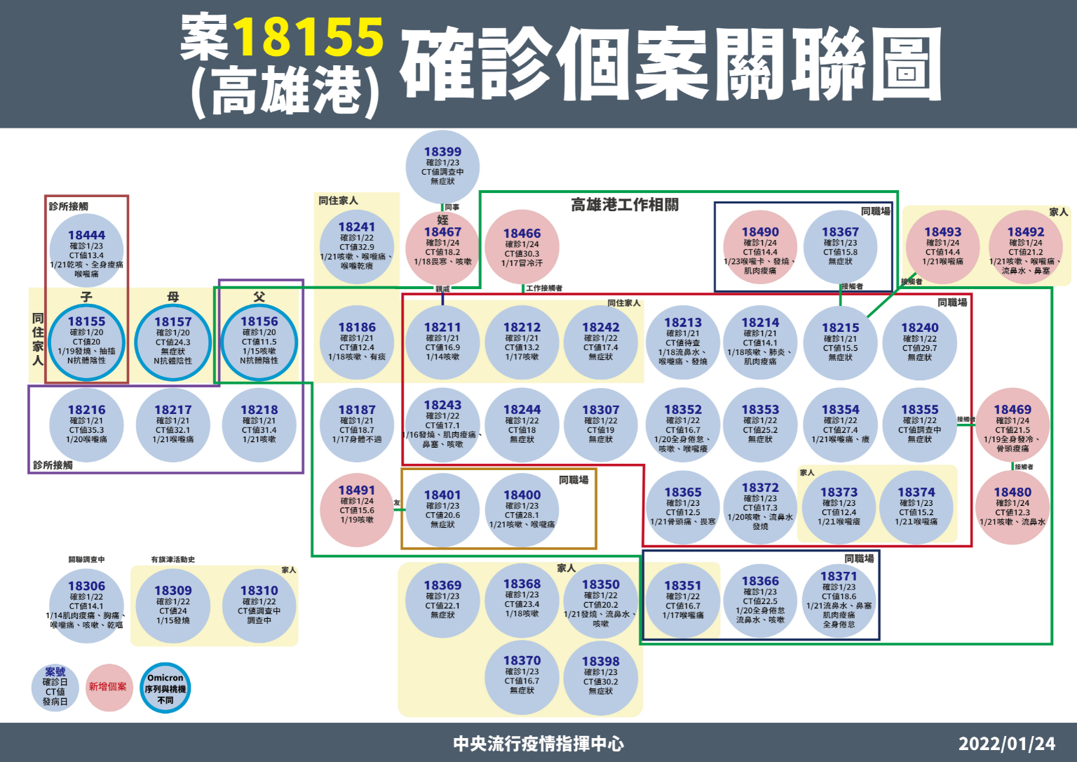 指揮中心表示,今日新增本土個案為10例男性、5例女性,年齡介於10多歲至50多歲;指揮中心說明,今日新增境外移入個案為21例男性、15例女性,年齡介於未滿5歲至70多歲,分別自美國(20例)、帛琉及印尼(各2例)、香港、越南、荷蘭、海地、菲律賓、多明尼加及比利時(各1例)移入;另5例調查中。入境日介於今(2022)年1月9日至1月23日。