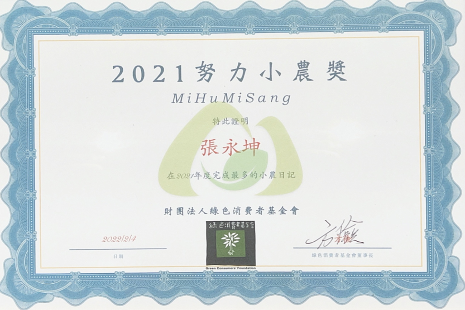 我們選在2月4日立春這一天將「年度努力小農獎」頒給順安蜂園Beetowe張永坤先生,以彰顯他在努力小農App上幾乎每天都留下他的工作紀錄。