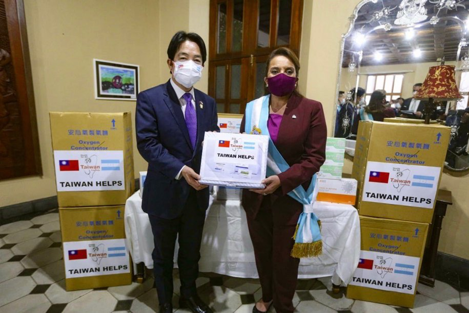 卡蕬楚就職典禮,觀禮台分成兩區,前區主要是卡蕬楚與家人、宏都拉斯政府官員、而各國元首與特使在前區的後方。賴清德被安排在元首特使區的第一排,賀錦麗在賴清德左側,兩人中間還坐了哥斯大黎加總統和西班牙國王。賀錦麗入場時逐一跟各國元首致意,與賴清德短暫交談互動。由於防範新冠疫情,現場賓客全程戴口罩。