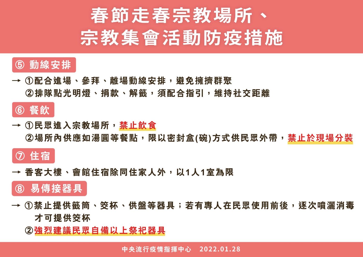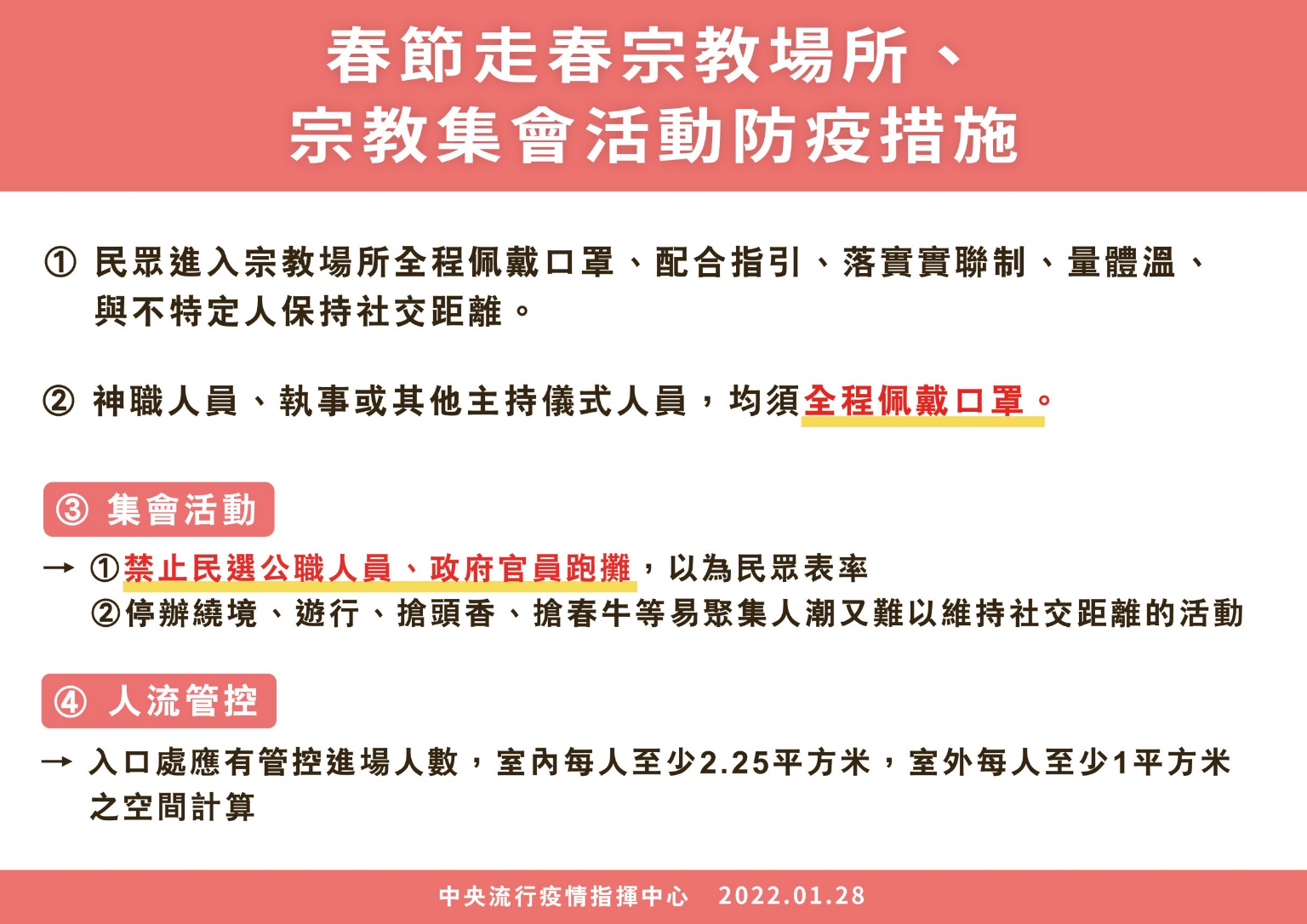 指揮中心強調,因應春節期間旅客眾多,為讓旅客均能順利返鄉過年與家人團聚,呼籲旅客提早至機場或港口報到,並配合現場工作人員指示完成填寫健康聲明書以及篩檢程序,以利航班準時出發;另也提醒旅客,如有感冒、上呼吸道感染或疑似肺炎症狀,應避免搭乘大眾運輸工具,並儘速前往醫療院所篩檢及就醫,減少與其他旅客接觸,以共同維護防疫安全。