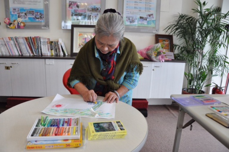今年彰基「健康書坊」特別邀請「黃金奶奶」黃美玉老師,推出「起步了就要往前走•跟著黃金奶奶畫人生」生命回顧展。