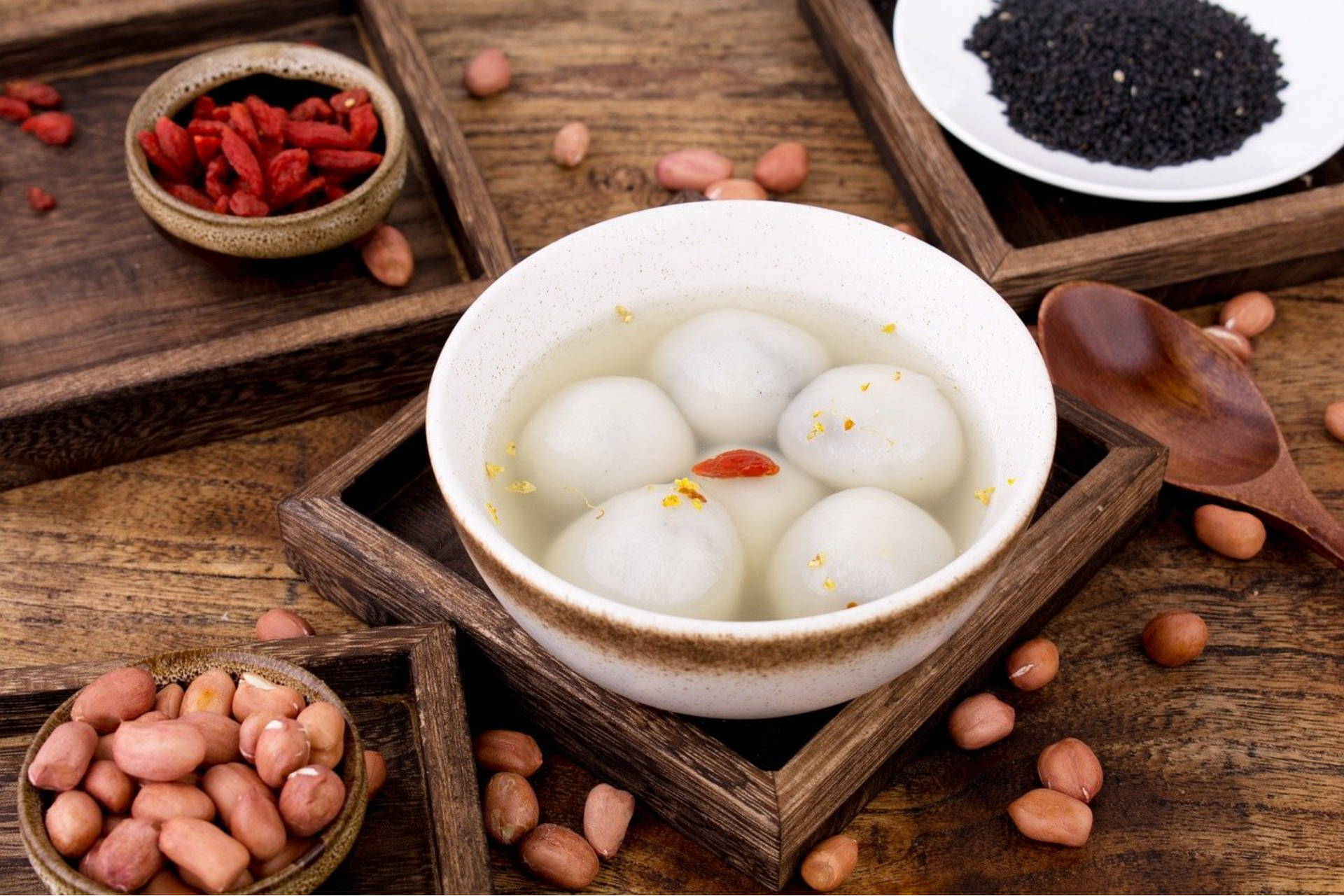 2. 甜湯圓除了煮酒釀和雞蛋外,還可以嘗試以桂花、龍眼乾、紅棗、枸杞、肉桂提味、以白木耳增加豐厚的口感。小圓仔若要裹粉,可嘗試將腰果、杏仁、芝麻等健康堅果磨粉,當成沾粉來沾食。