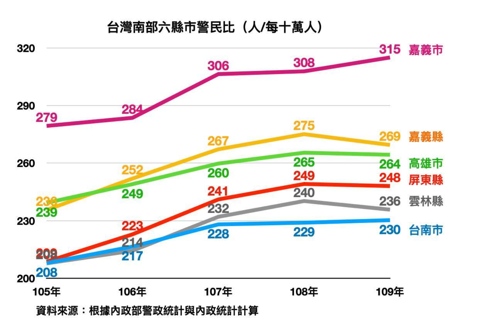 在治安方面,陳以信也驚覺,過去3年來台南人均故意殺人案、酒駕犯罪、賭博犯罪都是六都最嚴重,而且警力嚴重短缺,難怪被網友戲稱為「現實高譚市」。