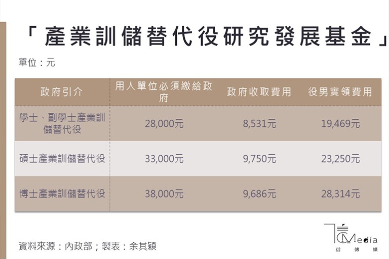 其中,有項「產業訓儲替代役研究發展基金」格外引人關注,從資料顯示,役男的役期共分為三個階段: