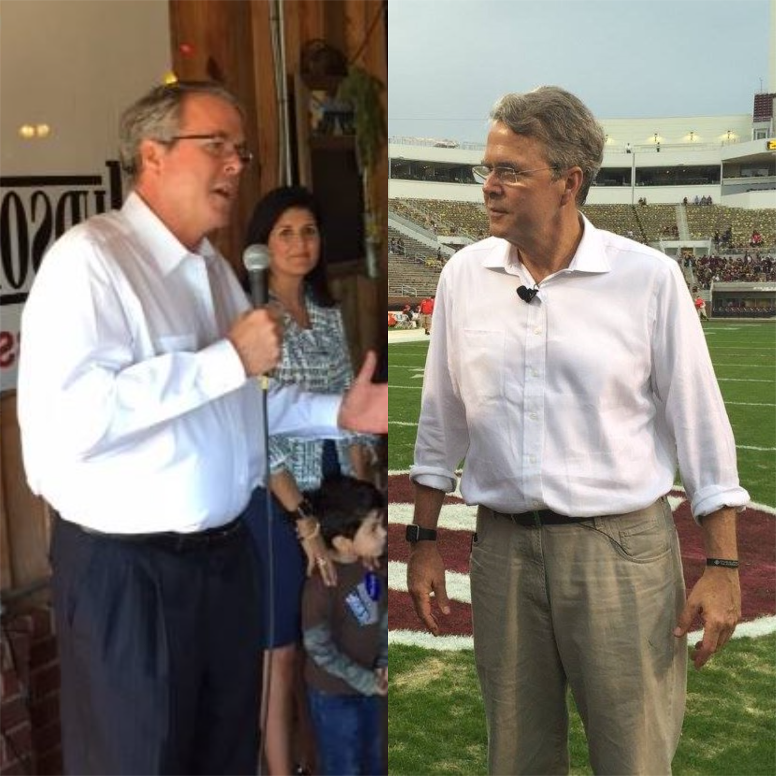 近年最知名「為選戰減肥」的美國總統參選人,應屬前總統小布希(George W. Bush)胞弟、前佛羅里達州州長傑布.布希(Jeb Bush)。於2016年角逐共和黨總統提名的傑布.布希,聘請私人健身教練、採用「原始人飲食法」(Paleo Diet)後,6個月瘦下18公斤。