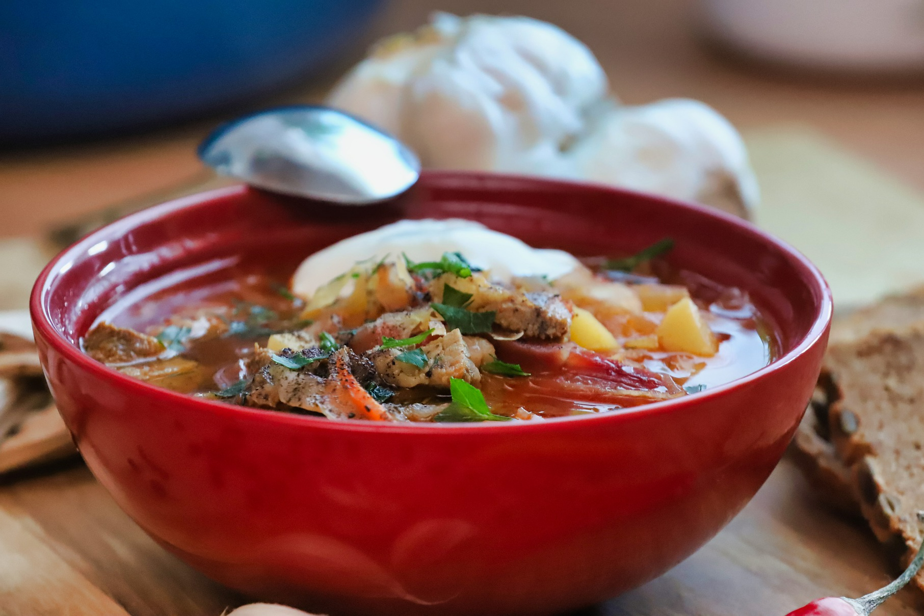 羅宋湯,是在牛肉(也會使用雞肉等其他肉類)高湯中加入甜菜根、洋蔥、馬鈴薯、紅蘿蔔、大蒜等各種蔬菜熬煮而成的湯。材料和料理方式依季節及地區不同有著天壤之別,至多可加入將近二十種材料製作。羅宋湯是東歐很受歡迎的湯品,尤其在烏克蘭被視為國民料理。不僅家庭日常會享用,在慶典、節日或婚喪喜慶時也是一道不可或缺的菜色,甚至被視為象徵烏克蘭文化與民族主義的代名詞。