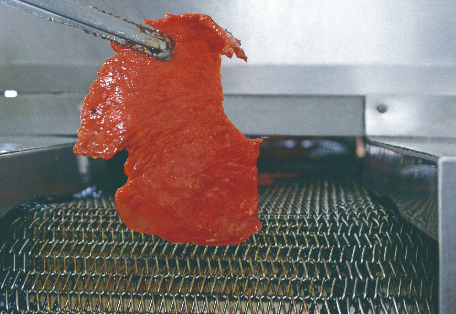 關於早年「肉脯」稱呼,因為熟的瘦肉塊在石臼中「撫開」的工法,改成臺語發音的「肉脯」。廣興的肉塊,則先滷4 個小時,以中藥醬汁清熬不加鹽,滷汁收乾才調味,紅糟上色,接著加熱「撫」散肌肉纖維,不同的進度,有不同的火候。