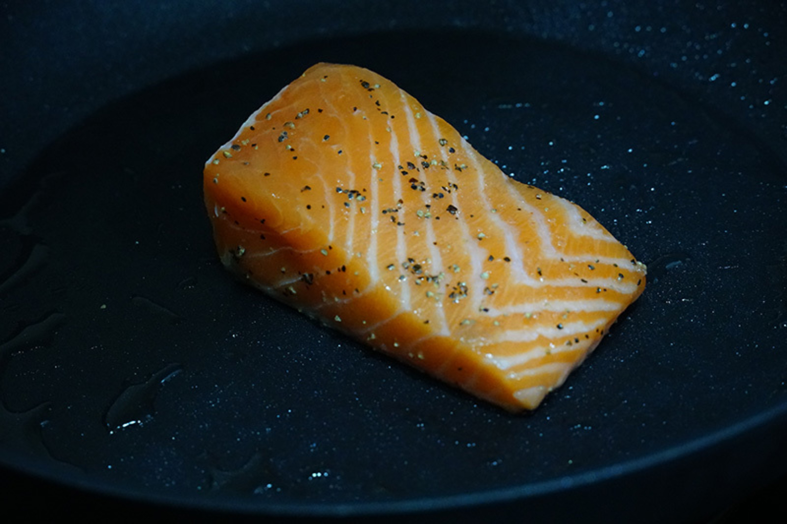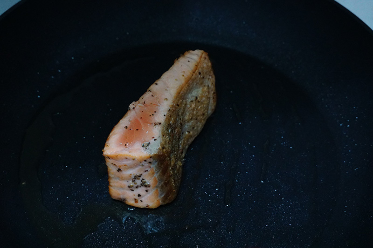 確認每一面都煎好,就將鮭魚起鍋備用。