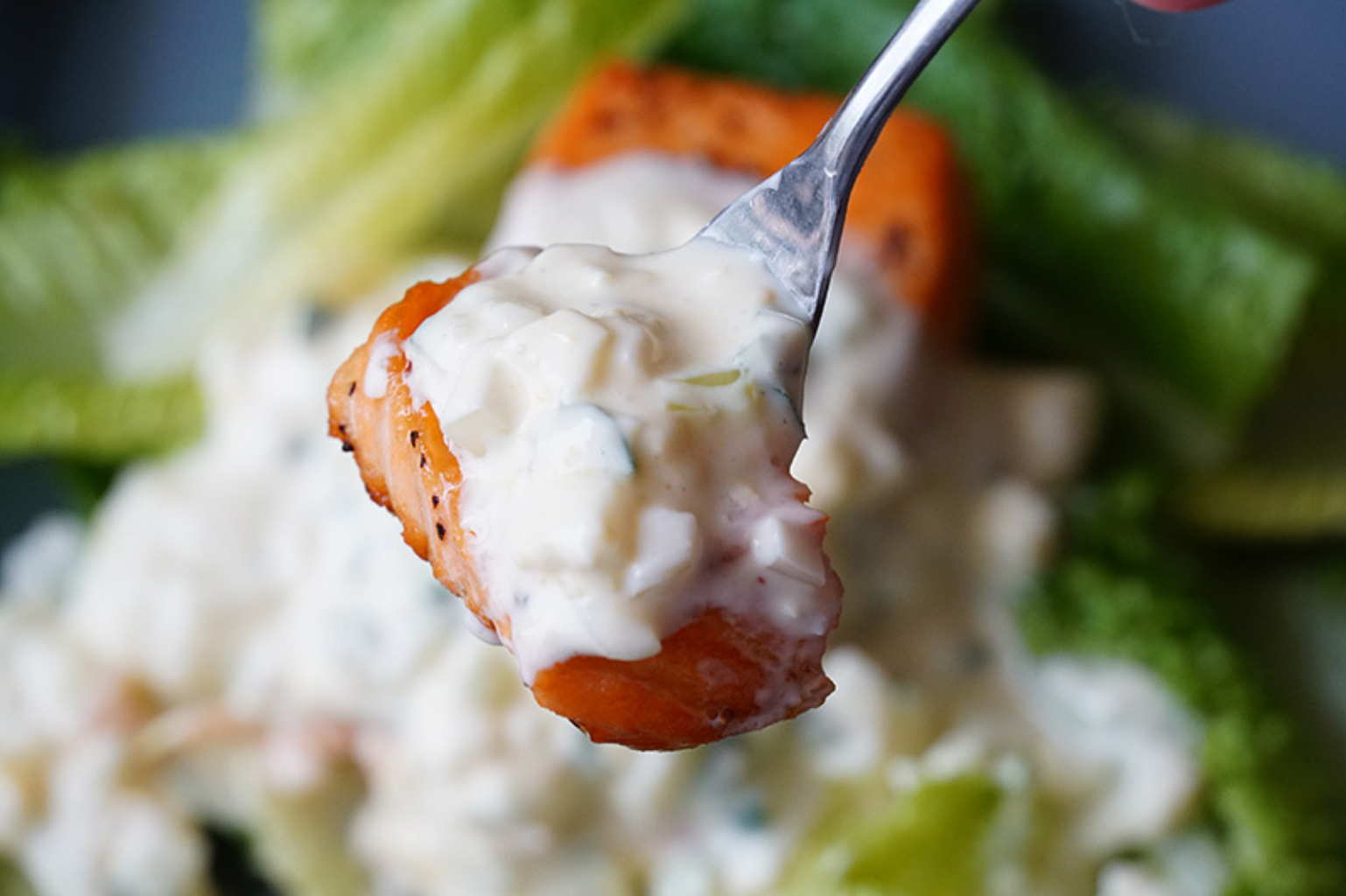 滋味酸酸甜甜又帶有優格奶香,非常開胃。而且整到料理高蛋白又有優質的鮭魚脂肪,生酮飲食也很適合吃喔!