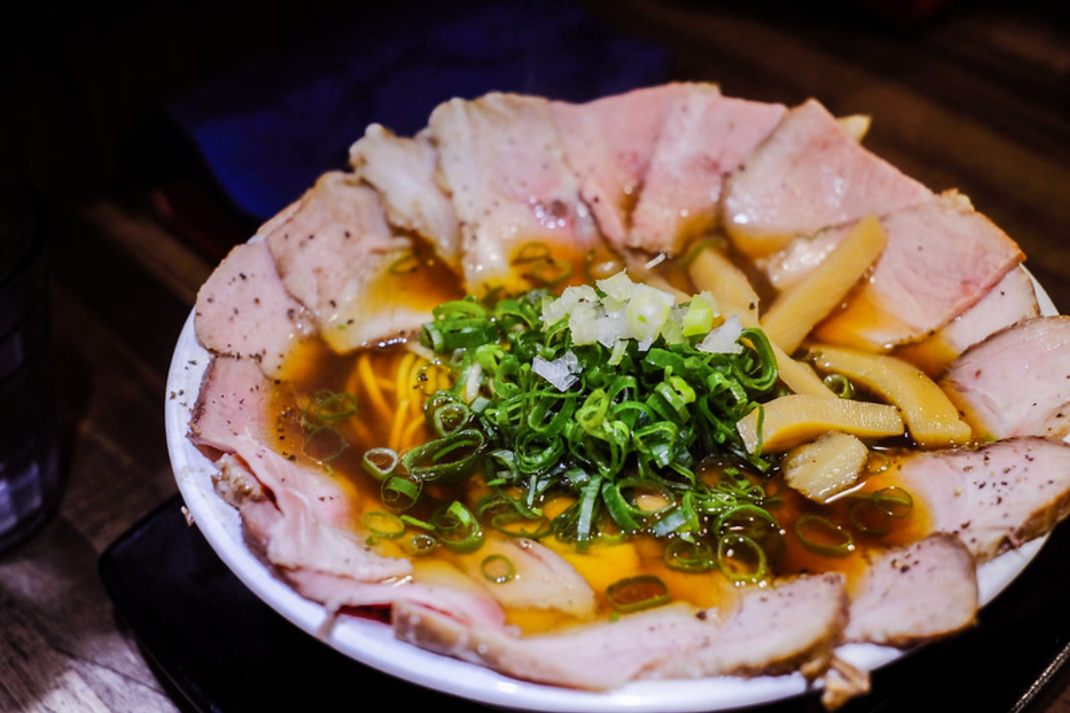 肉食人的最愛莫過於鷹流東京醬油拉麵蘭丸,最知名的「清湯東京醬油叉燒麵(肉肉SP)」或「濃湯肉肉SP」,最大特色是鋪在上頭12片滿滿的嫩叉燒,另外店內加麵無限加且免費,食量大的朋友絕對能吃得大滿足,不過,鷹流拉麵整體偏油偏鹹,如果吃不慣重口味的,店家也有提供調淡濃度的服務。