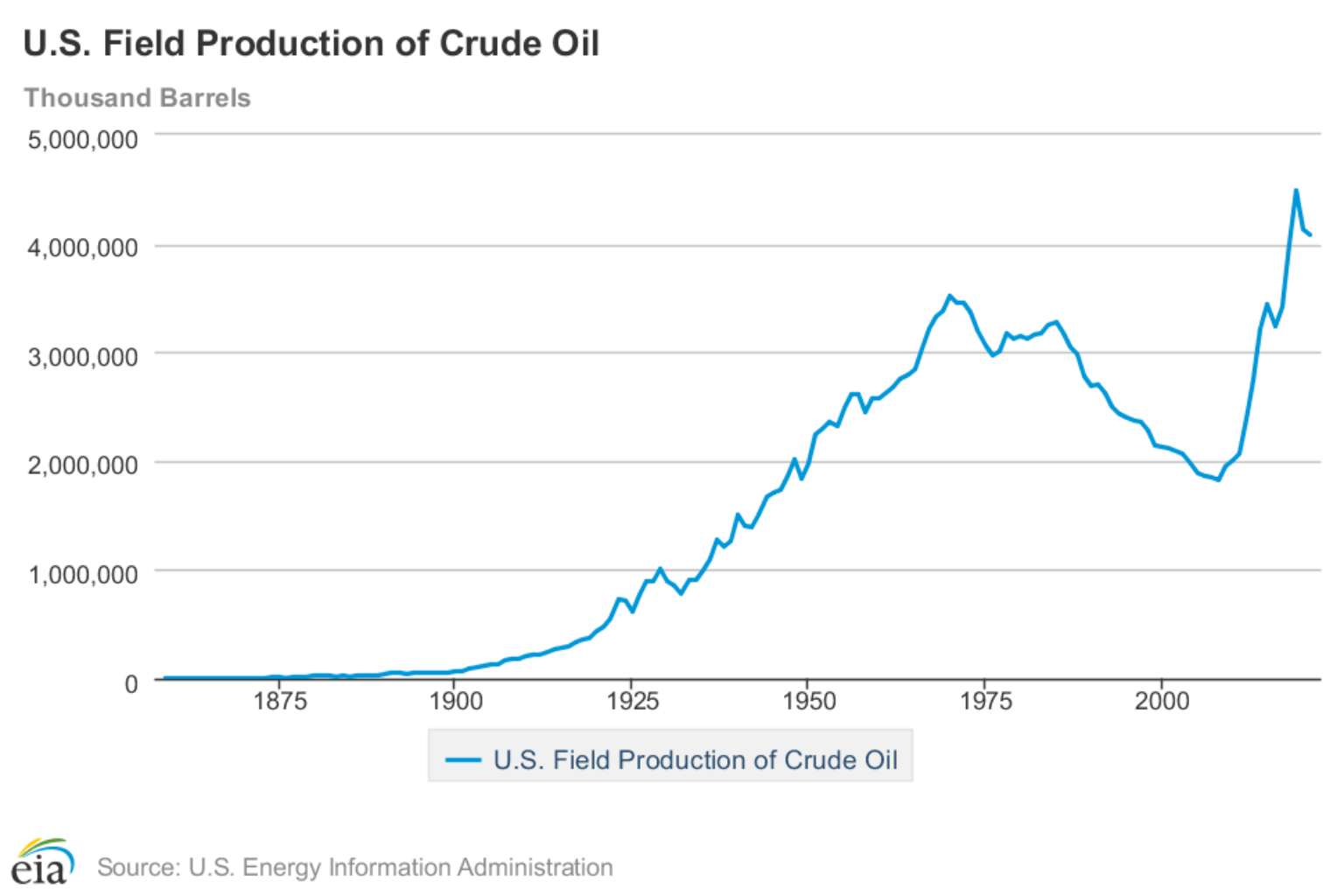 90年代末開始,美國逐年增加對俄原油進口,直到2011年因頁岩油革命出現下降趨勢。然而2014、2018、2020年油價崩跌,頁岩油獲利降低,再加上2021年疫情衝擊下勞力短缺、供應鏈斷鏈,以及拜登因其氣候政策較不鼓勵石化產業等緣故,導致美國自身產量縮水,對俄原油進口出現成長趨勢。