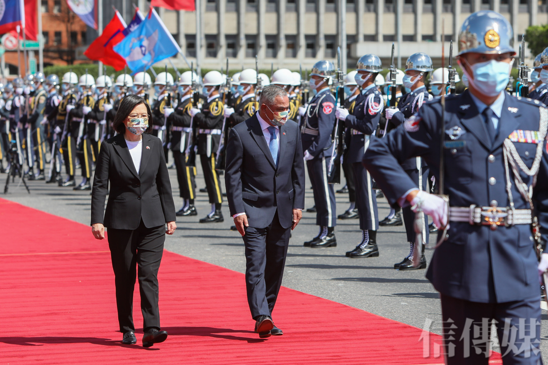 邦交國貝里斯總理布里仙紐(John Briceño)率團訪問台灣,蔡英文總統今(9)日上午以軍禮19發禮炮歡迎,並與布里仙紐一起校閱儀隊。蔡英文表示,兩國建交將滿33年,期待透過布里仙紐來訪,能深化彼此合作關係、提升邦誼。軍禮結束蔡英文也將在總統府內設國宴款待貴賓。