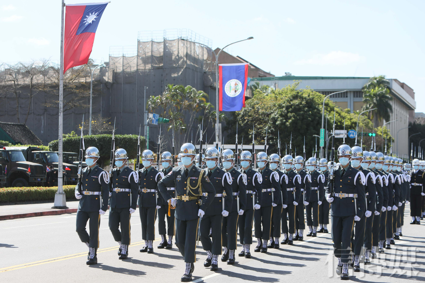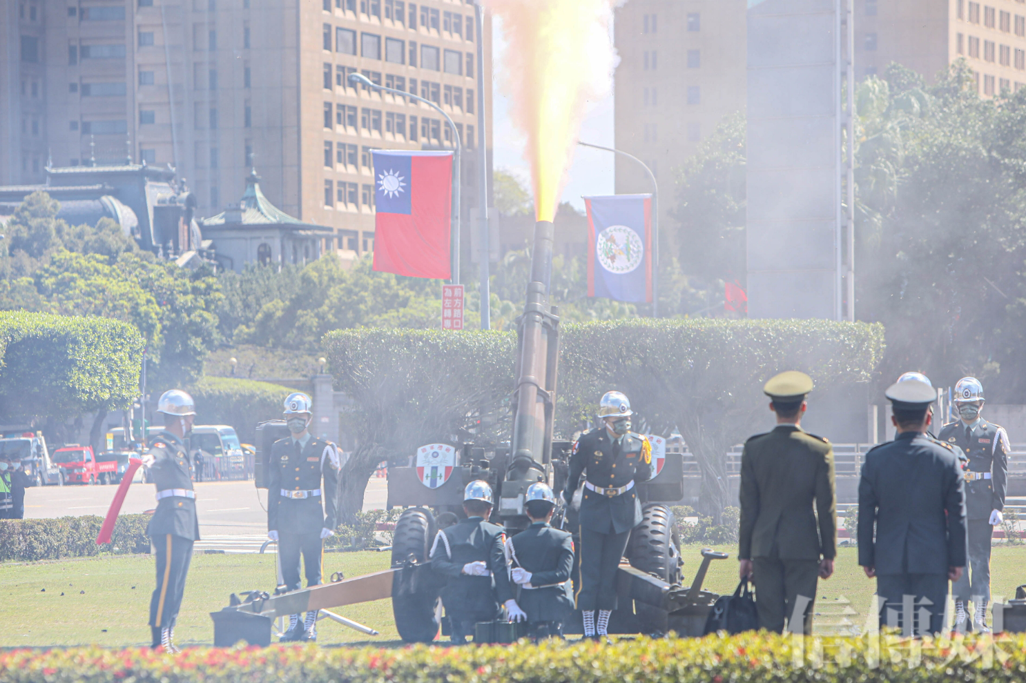 總統蔡英文以19響禮炮軍禮歡迎貝里斯總理布里仙紐來訪。(攝影/林聖凱)