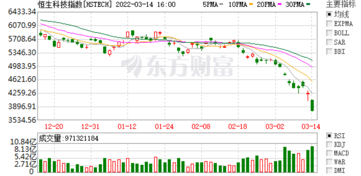 恆生科技指數14日盤中一度狂跌超過9%,收盤下挫4.3%,創下2020年7月該指數推出以來最大單日跌幅,並創下歷史新低,拖累香港股市和中國股市當天雙雙重挫。