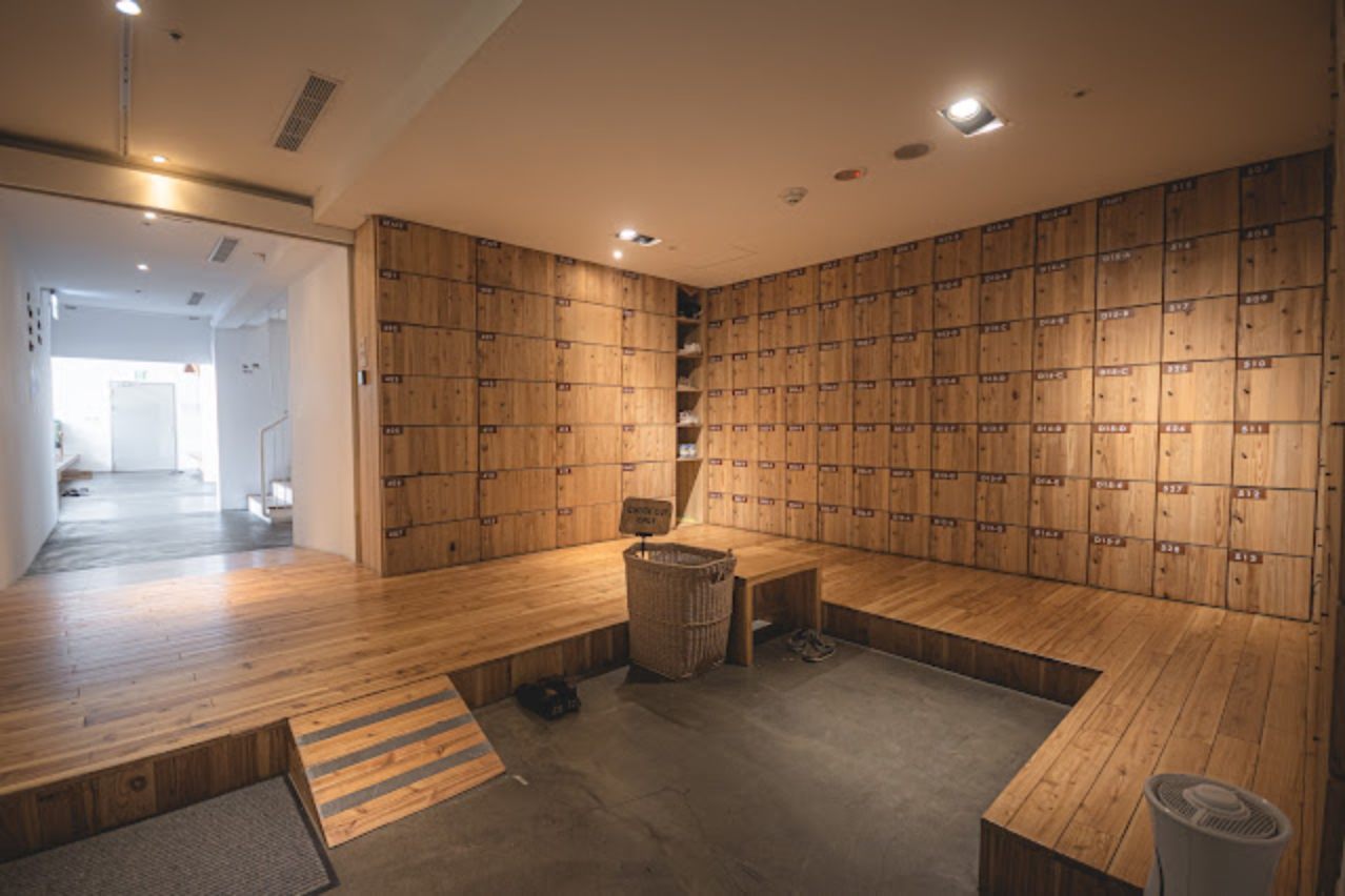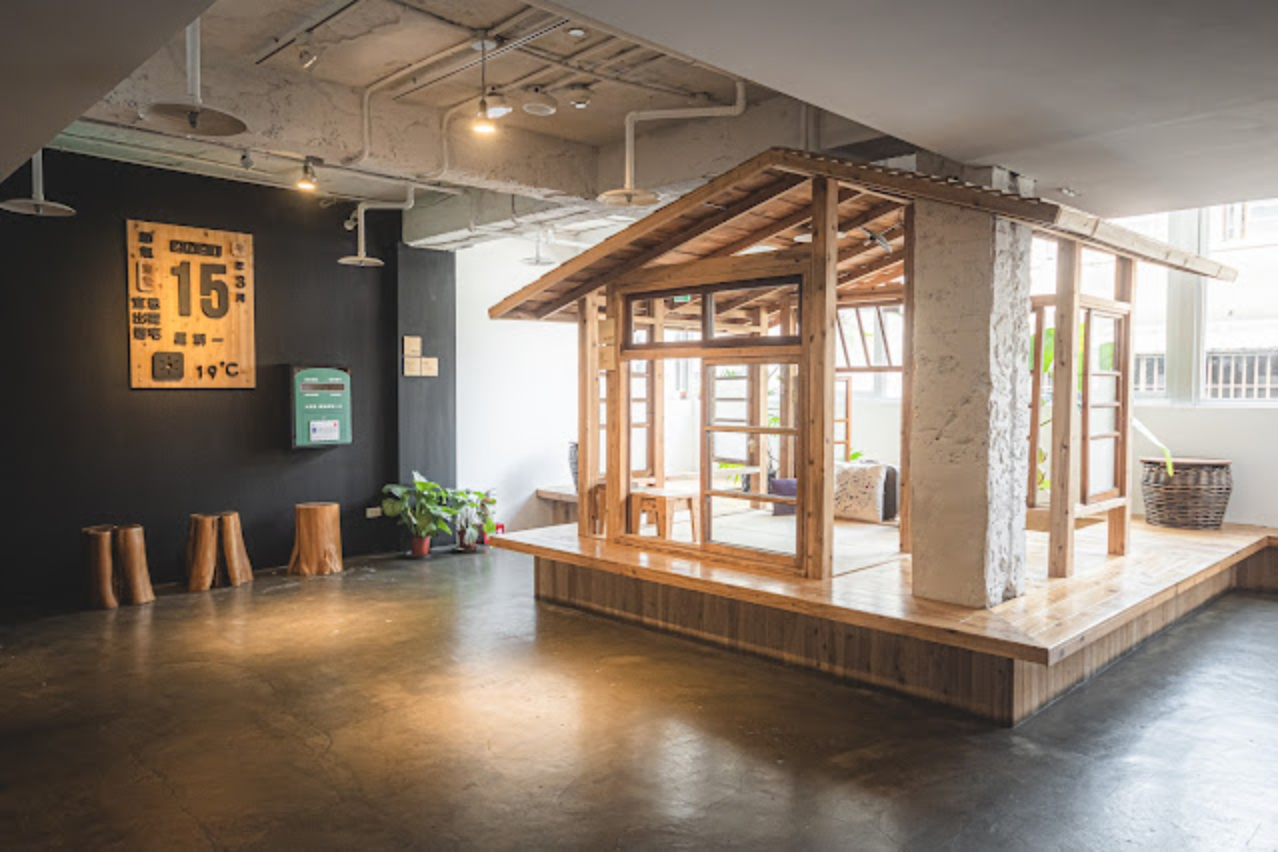 隨著電梯門敞開,傾瀉而出的暖陽灑掃著冷冽的水泥地,吐納之間,柳杉香氣沾滿鼻息,我們於玄關處換上拖鞋,來時奔波的勞苦瞬間舒展不少,有別於以往封閉且能一眼望盡的飯店大廳,落地玻璃窗接引外頭天光與在地街景,挑高複層的空間裡建有兩層樓木屋,木地板上散放著懶骨頭,也仍保留易於交流的長桌,「想要比較多人跟你在一起,可以選擇外面的大桌,想要獨處時,也可以選擇其他地方,不用被迫社交。」Eric以客廳定義公共空間,讓來者總能找到自在的一隅。