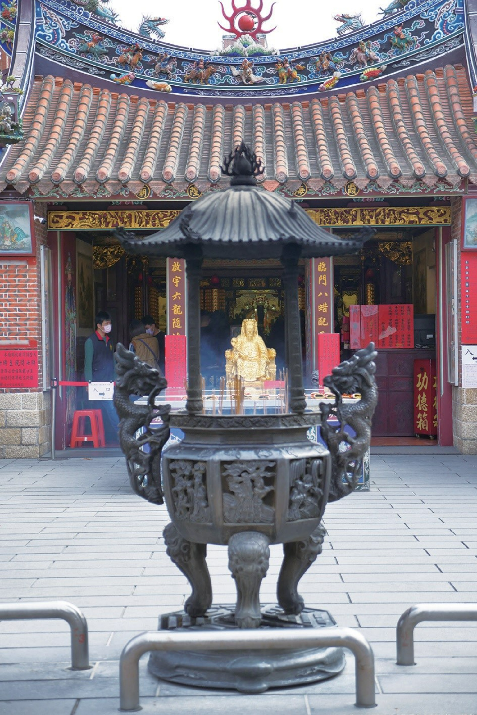 來到永樂市場, 當然要逛一下迪化街,除了古早南北貨可供挑選,還有老屋新用,像是屈臣氏大藥房跟各種藝埕。頂下郊拚時被搶救出來的城隍爺鎮守在霞海城隍廟,但講到霞海城隍廟,更熱門的恐怕是向月下老人求姻緣。當初領著同安人開發大稻埕的林右藻所建立的林復振商號還在迪化街上,是日本紅帽子喜餅的臺灣代理商。