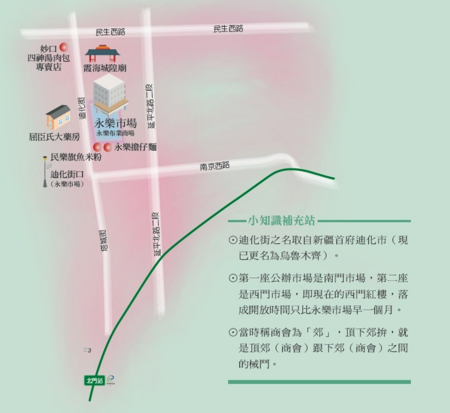 ☉ 迪化街之名取自新疆首府迪化市(現已更名為烏魯木齊)。