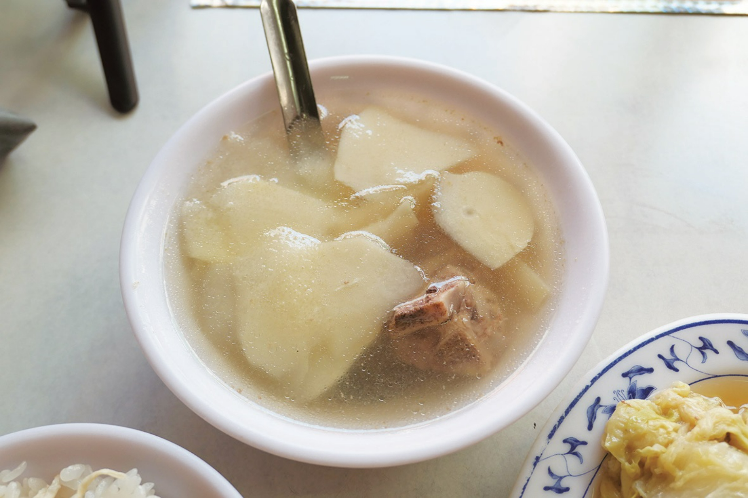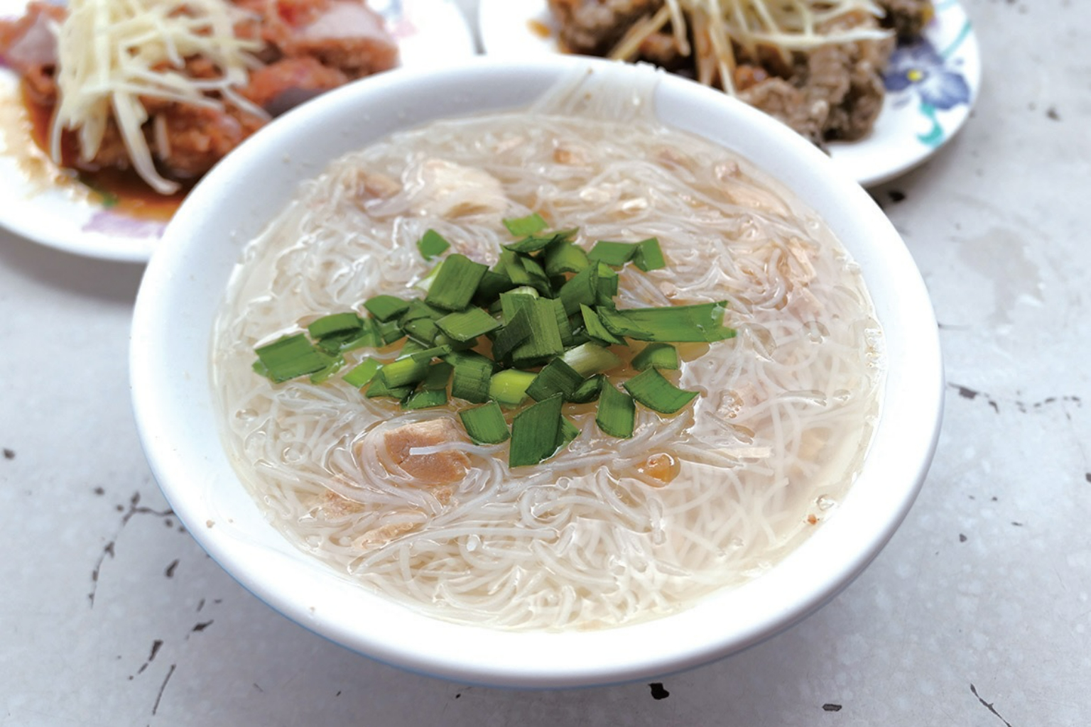 紅燒肉有高級日式炸豬排的口感,配上紅糟酥炸外皮,五香鹹氣十足,柔軟多汁,配上溫順的米粉湯剛剛好。或許這是被米粉之名耽誤的紅燒肉吧。