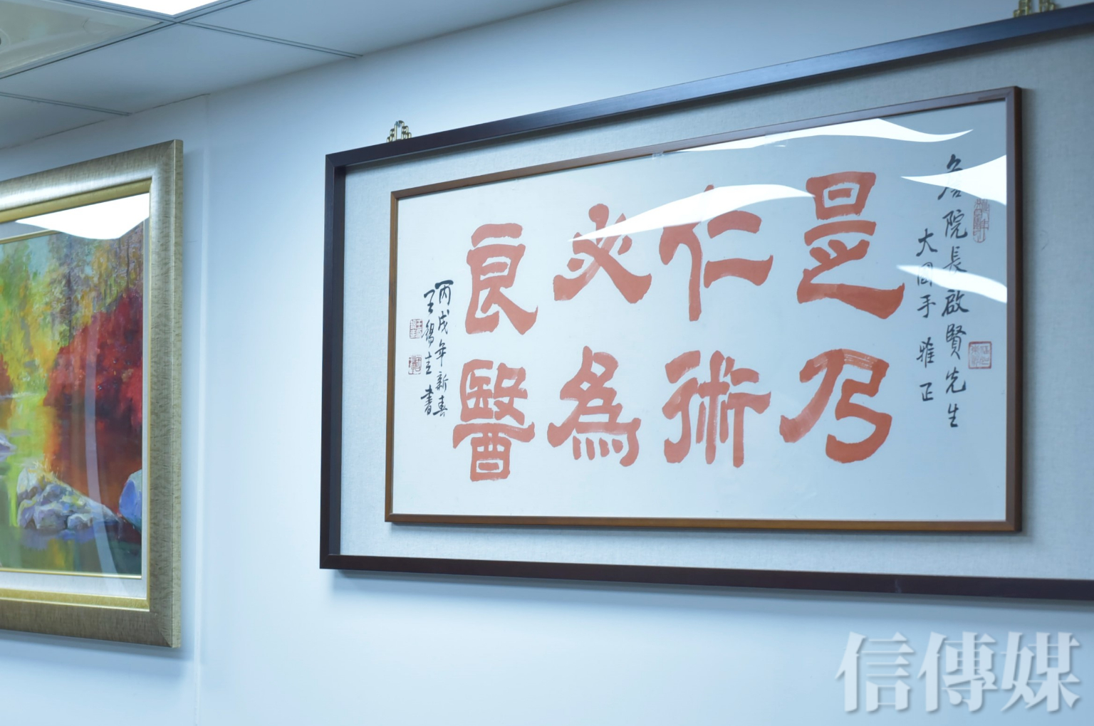 採訪尾聲,詹啟賢辦公室門口外掛著大大的「是乃仁術 必為良醫」書法字樣,其原文出自《孟子·梁惠王上篇》:「無傷也,是乃仁術也。」意思是沒什麼妨害的,這正是仁慈的表現。