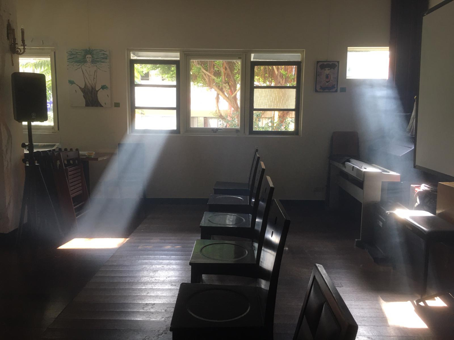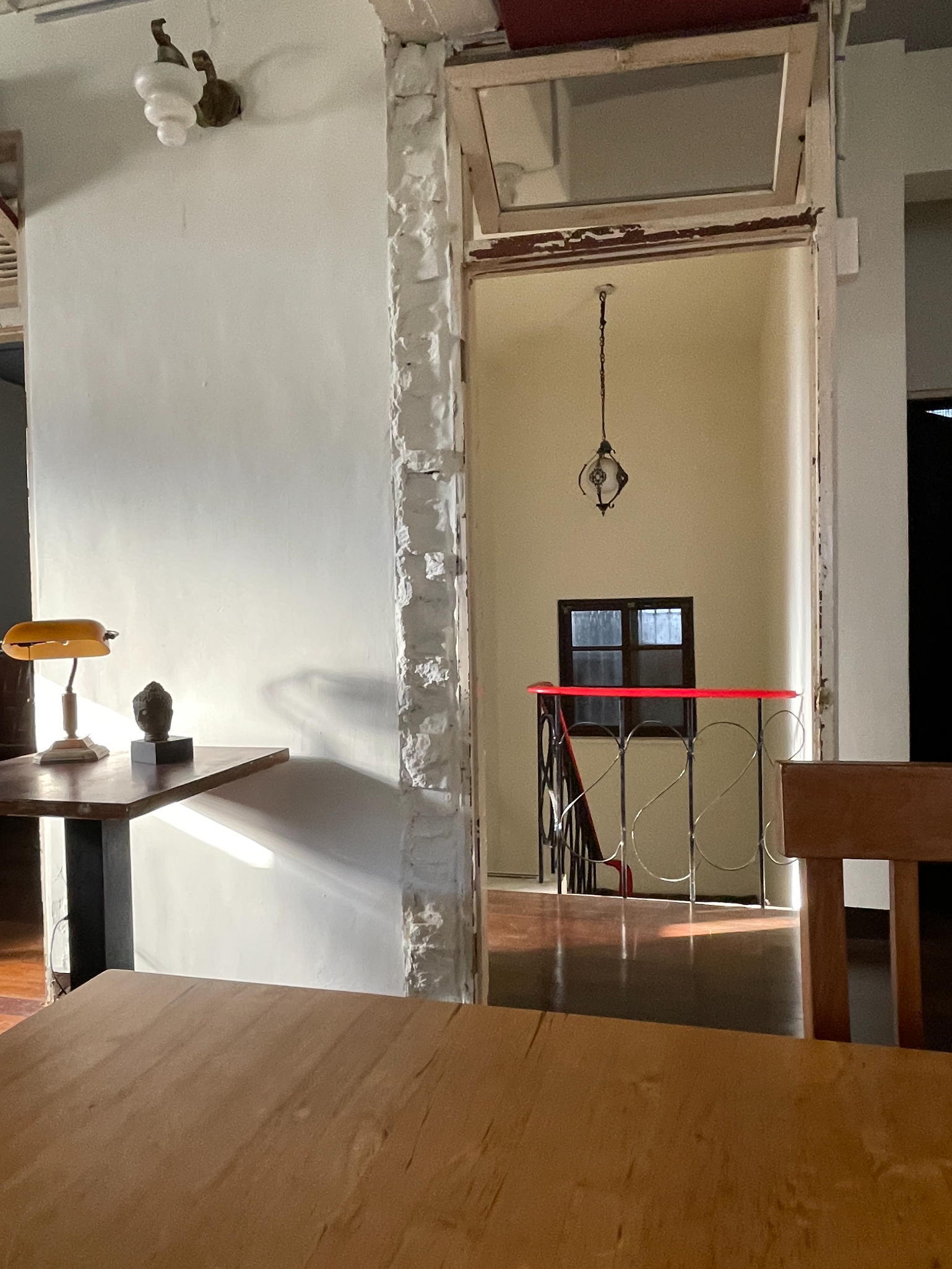 冥想過程中,指導靈告訴我 :「只要找到一個地方,做我想做的事就對了。」並給了我一個sign——「不在前、不在後,在中間…… 」我打開地圖,查看新店的中間在哪裡,輾轉來到中央新村。這裡有一些約莫60年代、兩層樓帶有院子的小洋房,還保留了兒時常見的白橫條紅木門,非常有感覺。