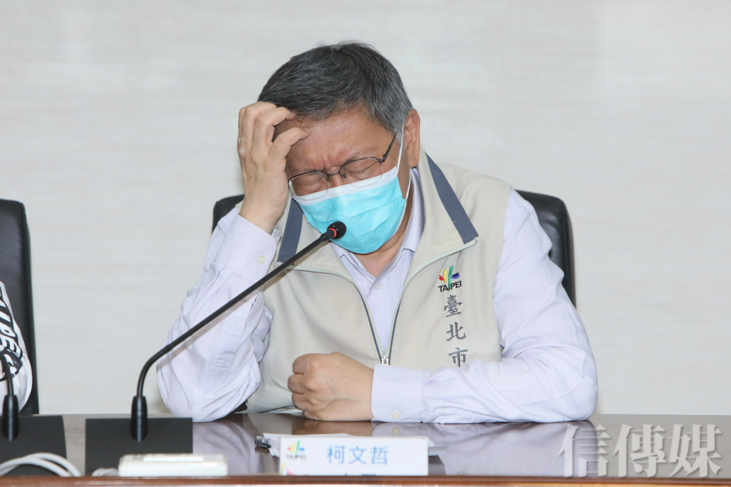 面對媒體提問,柯文哲眉頭深鎖相當無奈。(攝影/林聖凱)