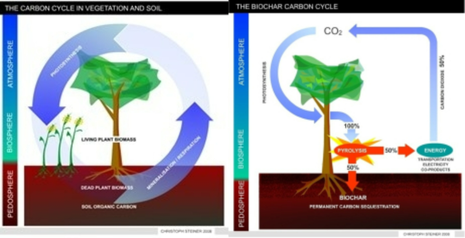 而生物碳能夠有一、二千年的半衰期,就很能達成「碳封存」的使命,大量將二氧化碳封存在土壤中。
