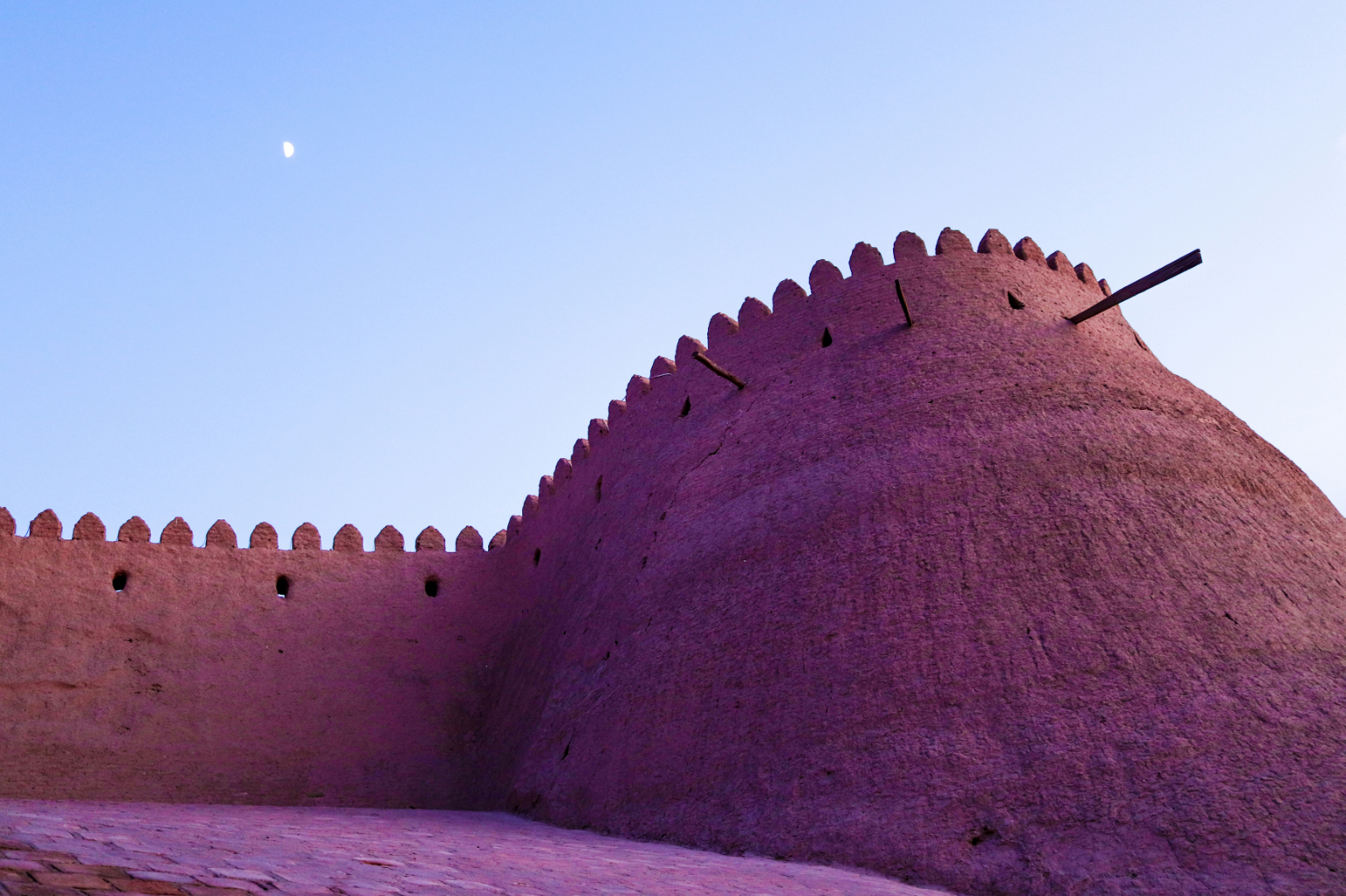 昨晚抵達希瓦時夜已深,皎潔的明月高掛在城牆上。6世紀以來它無數次被攻破及重建,現在只剩兩多公里長。那十米高、地基六米厚的堡壘,世代守護著皇族。