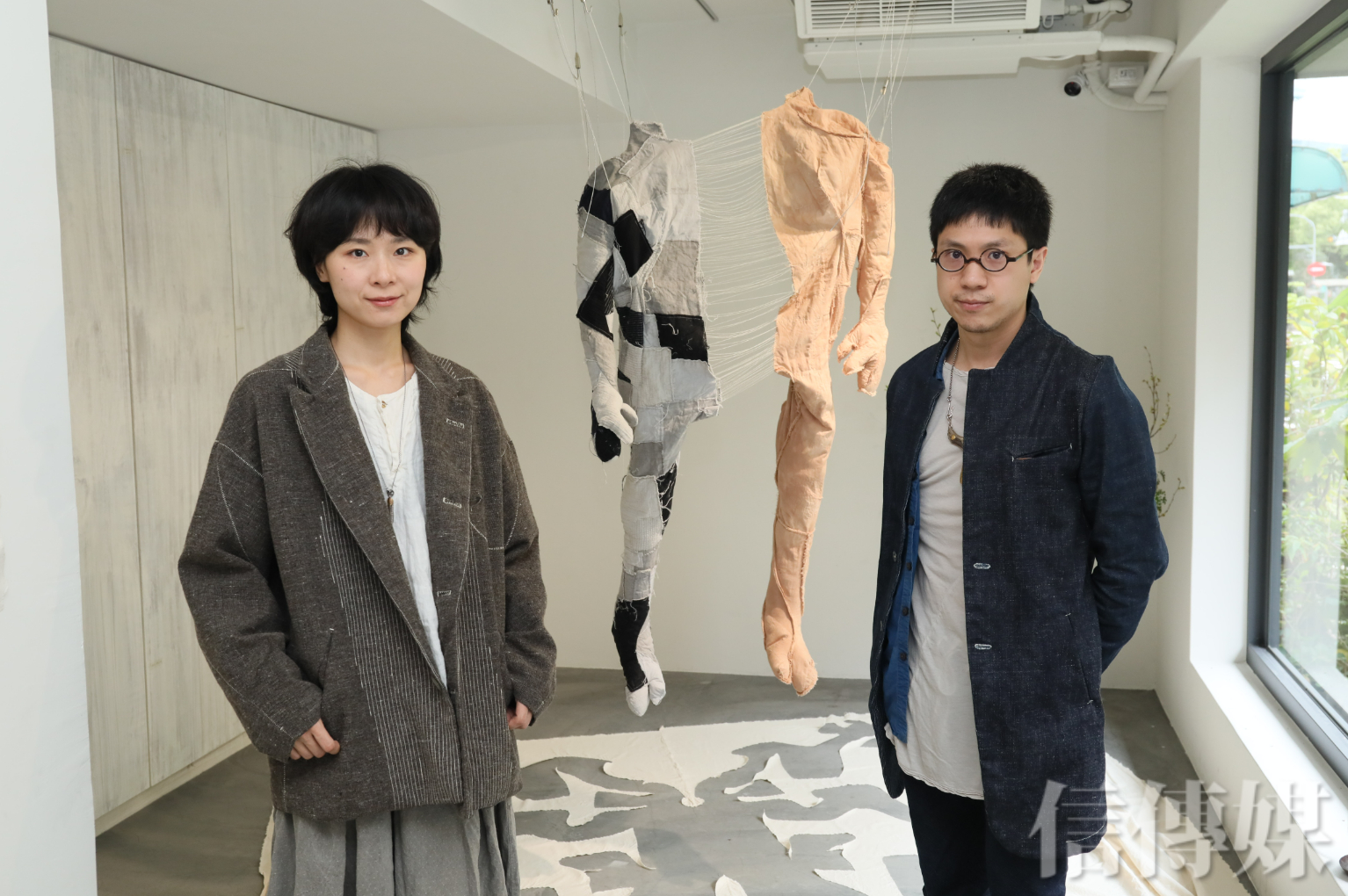 PROJECTbyH.這一季的主題為「Let Go」,但放手非放棄,而透過打破服裝既有的印象與框架,拆開後再重新解構審視自我,裝置由廢棄的布料拼接再生成人體的樣貌,卻被分成兩半左右對比、一表一裏,如同將自我撕開去探索自己。