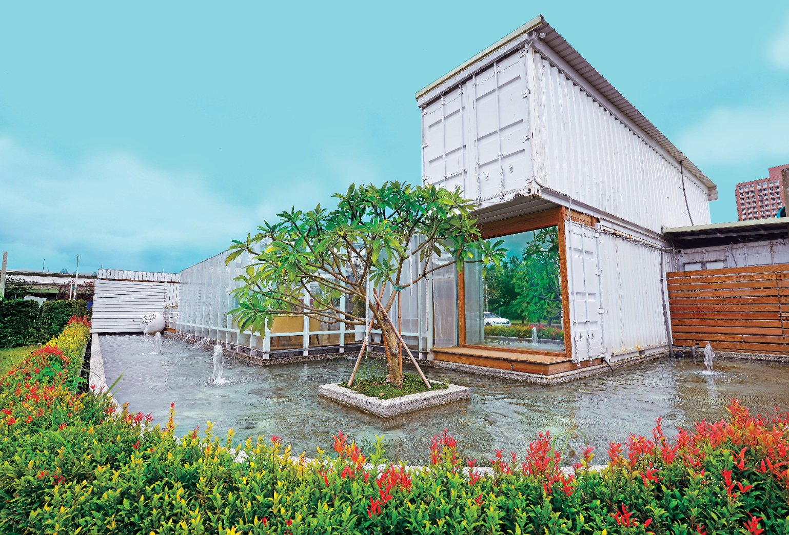 想在熱鬧的都會中心尋找一隅清靜天地,不妨造訪「OVERTHERE 在那裡」餐酒館。白色系玻璃屋佇立在一方水池和綠草如茵的庭院中央,水瀑自玻璃帷幕潺潺而下,水緩緩流動的悅耳聲與視覺感,營造出悠閒氛圍。餐酒館風格簡約,空間寬敞明亮,搭配柔和色調,坐在舒適的沙發上,令人拋開繁雜思緒,重拾久違的平和。
