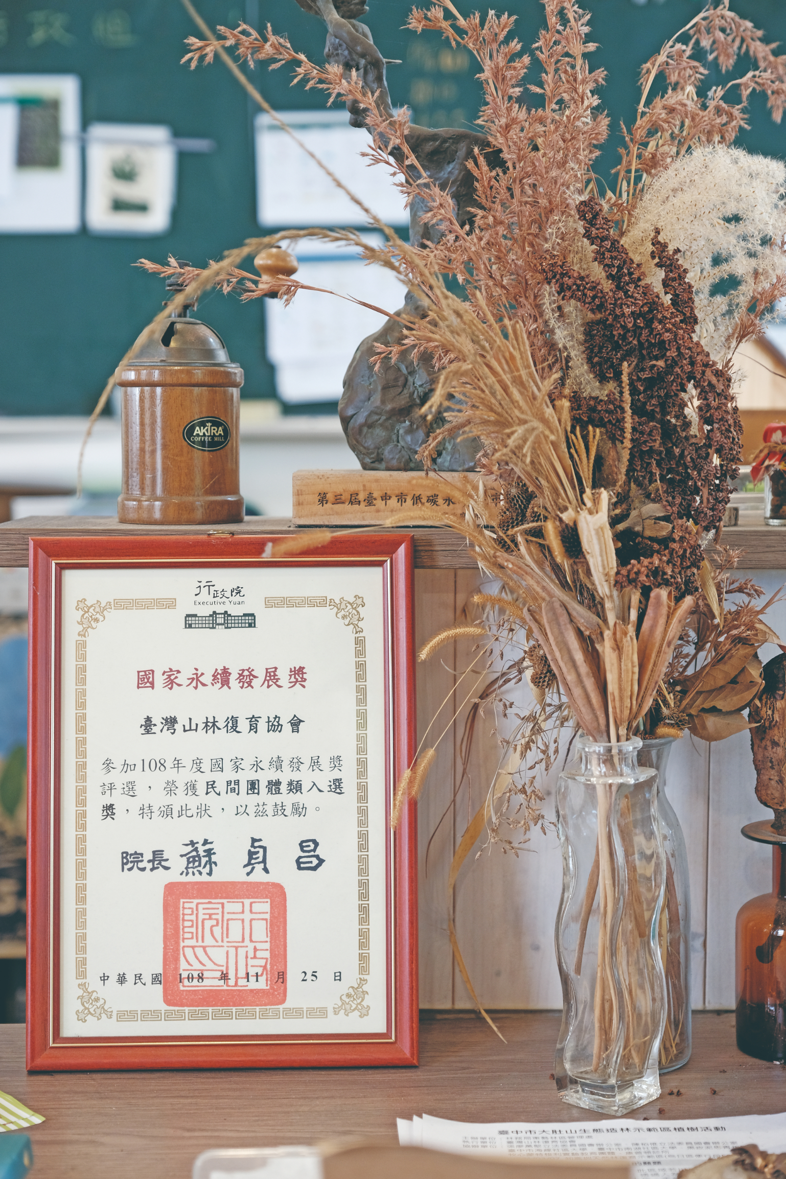 冬季的大肚山上風勢強勁,連車子都被吹得搖搖晃晃,不過山坡上的樹木早已適應了這樣的生長環境,任其枝頭隨風擺盪,謙卑地讓風穿過身軀,但樹根依舊牢牢抓住這片土地。去年臺灣山林復育協會將經營5年的玉門路山佳伊咖啡館,搬遷至永春南路上的大肚山森林復育中心,並成立「山海島語生態圖書館」,期許能如同大肚山上的樹木一般,為山林復育立下扎實根基。