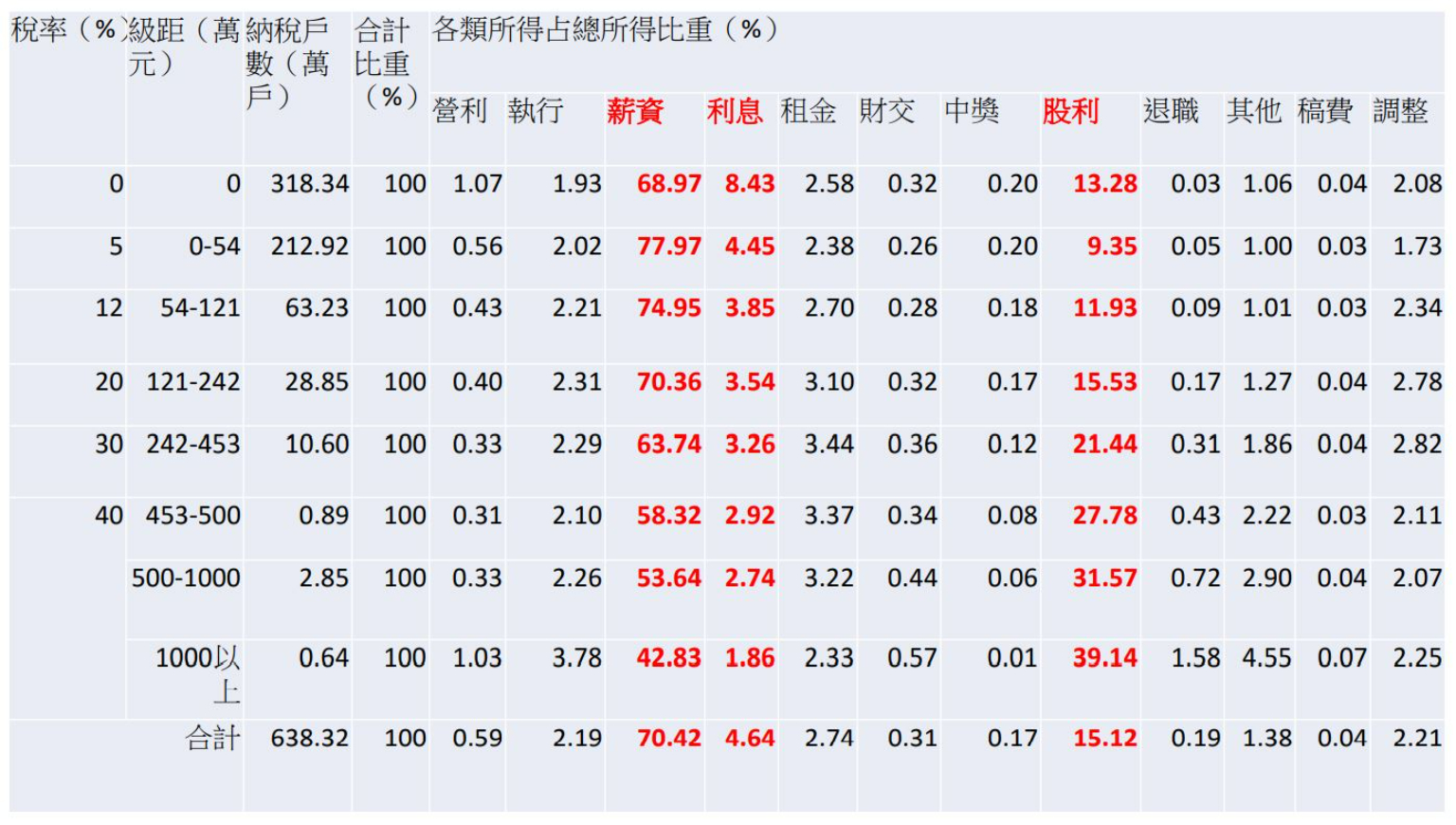 我們要了解為什麼這一批人這麼有錢?就是他的所得配置,高所得跟低所得不一樣,你如果要從低稅率慢慢往上爬,就要增加股利收入的比重,就是你要投資。