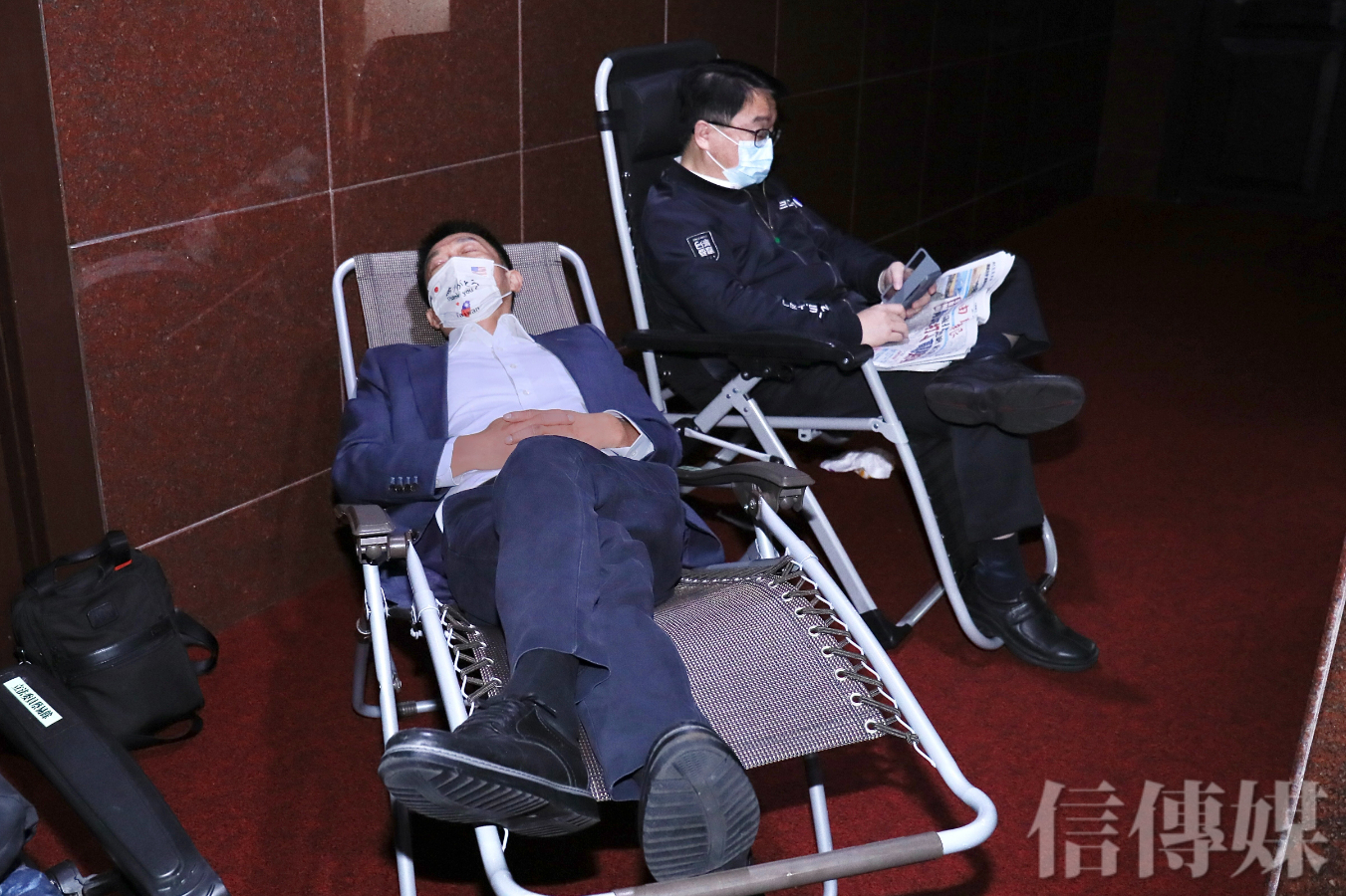 立法院財政委員會今(21)日審查攸關國務機要費除罪化的會計法草案,綠營立委連夜輪班守在委員會門口,更發布早上6點黨團甲級動員令,不管如何都要讓此法案過關。(攝影/林聖凱)