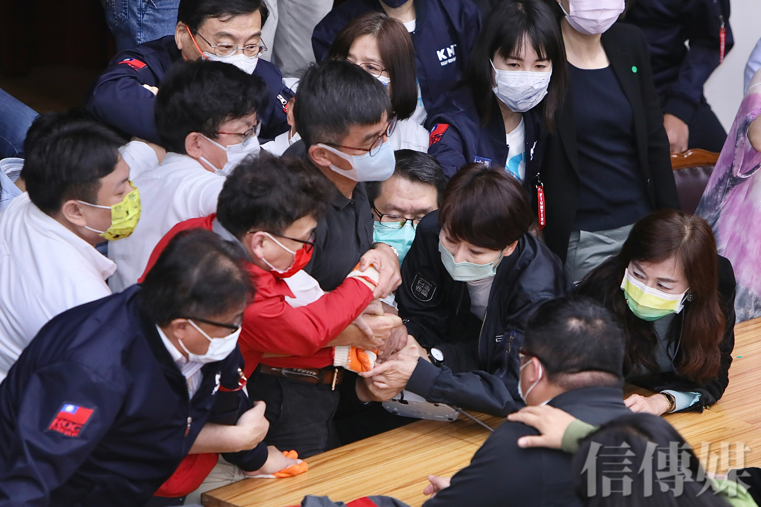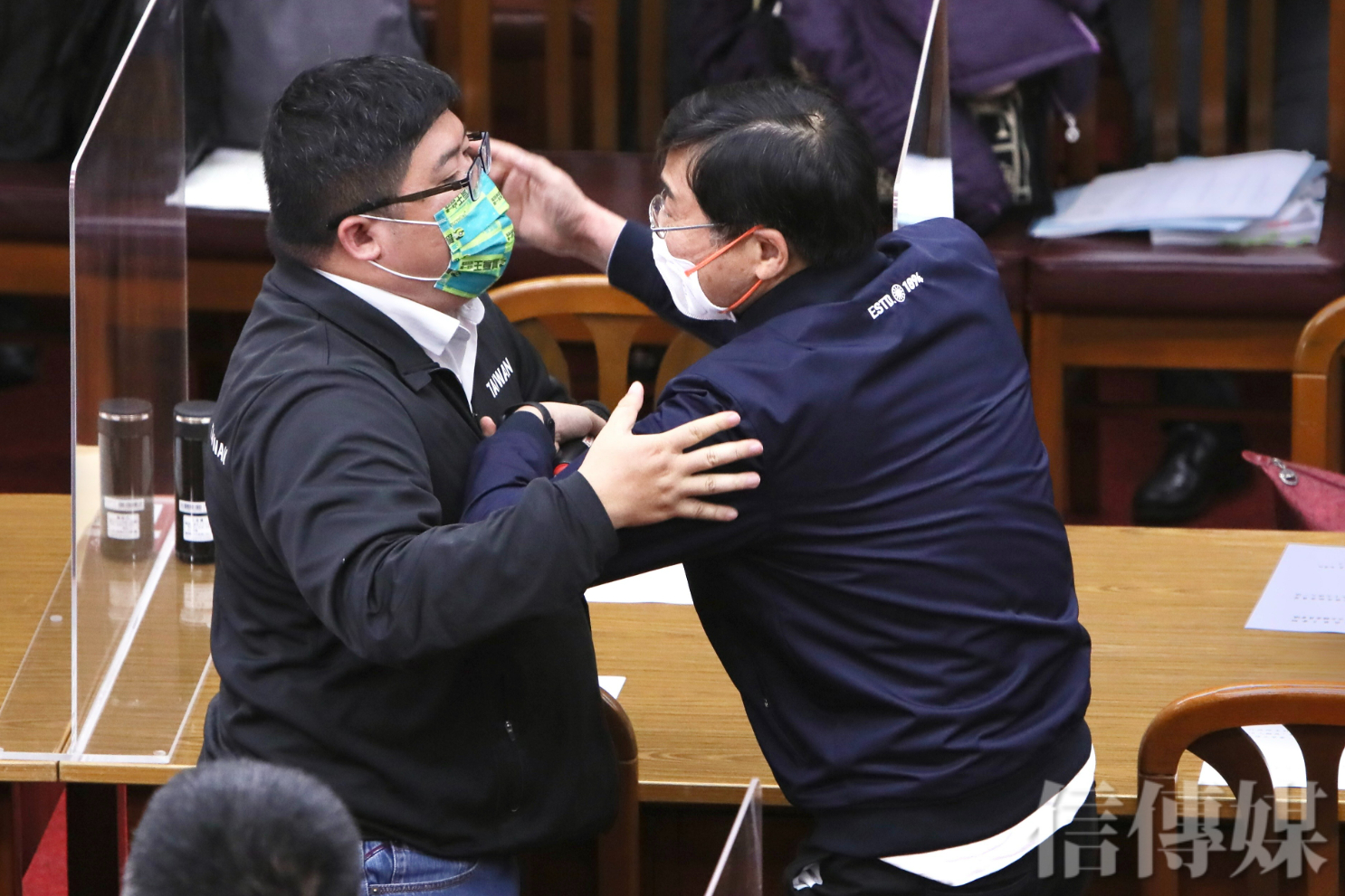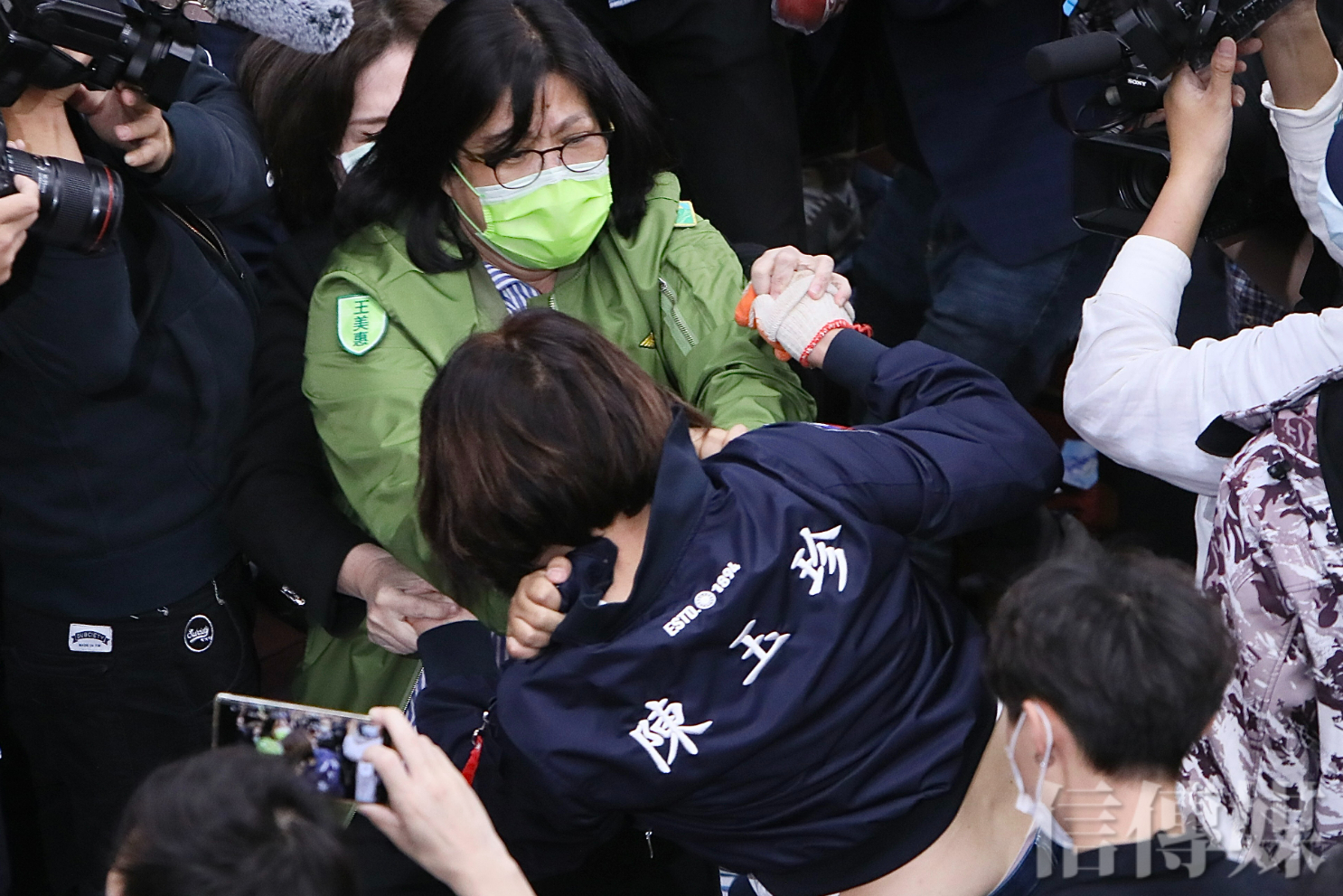 民進黨立委王美惠和國民黨立委陳玉珍爆發多次推擠。(攝影/林聖凱)