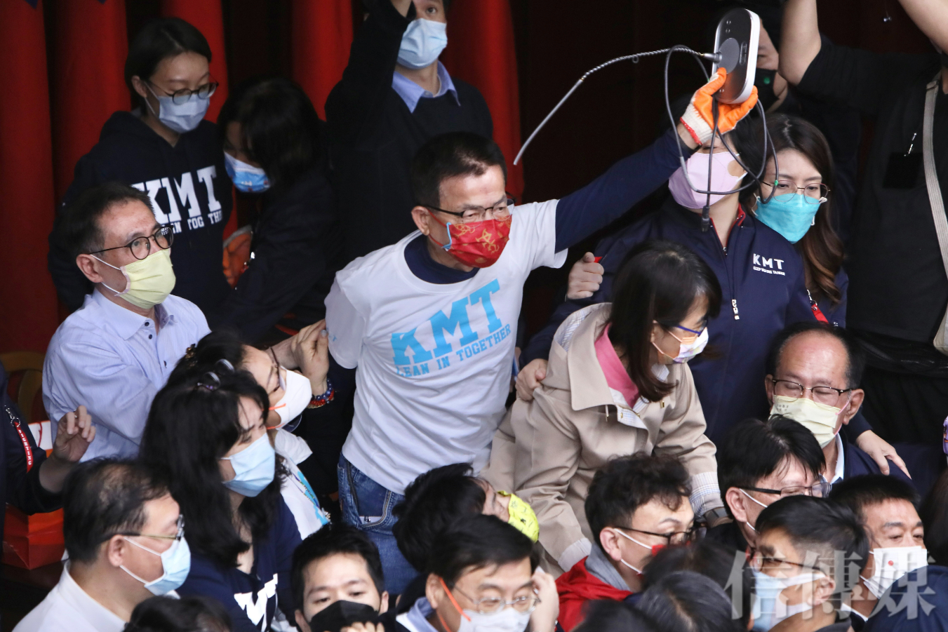 民進黨立委蔡易餘將藍營總召曾銘宗推離主席台。(攝影/林聖凱)