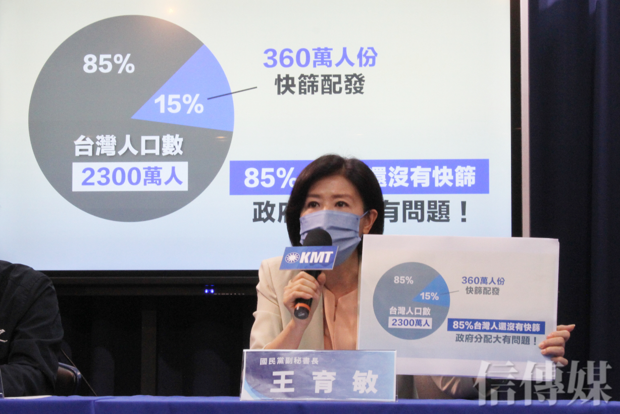 今天王育敏召開記者會指出,在單日確診超過3萬例的情況下,快篩是民眾健康資訊的重要來源,但指揮中心卻亂了套,甚至病急亂投醫,讓擁有多項黑歷史的「高登環球」公司投標1700萬劑快篩。她並指出,此事先由國民黨立法院黨團揭發,緊接著國民黨文傳會副主委葉元之也跟進,揭露高登公司過往涉嫌詐欺、違反藥事法的黑歷史。