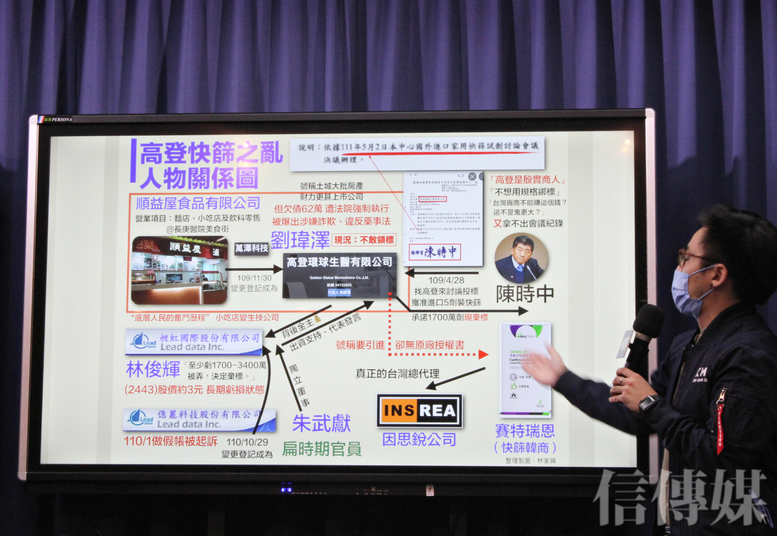 繼去年5月「疫苗之亂」,今年5月則掀起「快篩之亂」。國民黨今(6)日召開記者會,揭露高登公司過往涉嫌詐欺、違反藥事法的黑歷史。國民黨文傳會副主委林家興更指出,高登公司背後金主係昶虹公司,這家公司的獨立董事竟是扁朝官員朱武獻,還曾獲總統蔡英文聘為總統府國策顧問。