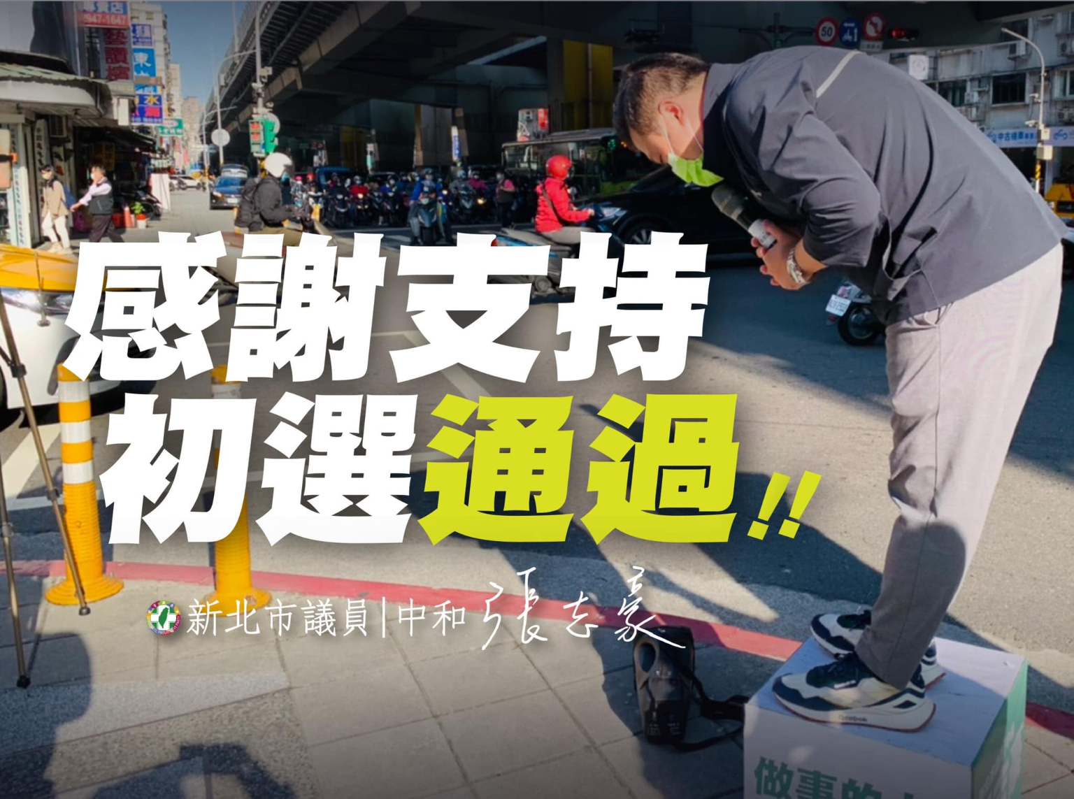 今也公布中和區初選民調,隸屬湧言會議員張志豪,成功力抗英系,初選第一名過關,英系新人張嘉玲也順利通過初選,同選區還有蘇系現任議員張維倩也過關。