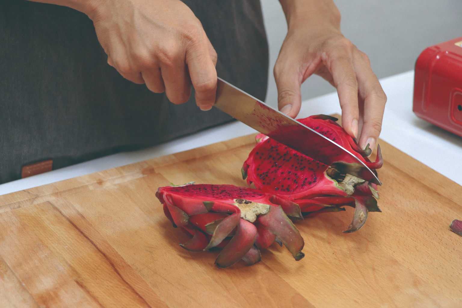 新市「陳爸的白頭翁果園」第二代陳正明,5 年前回鄉接班父親的火龍果園。不斷思索如何異業結盟的他,嘗到林韡勳的果醬後相當驚豔,甜玉軒的果醬因此多了火龍果的嫣紅。