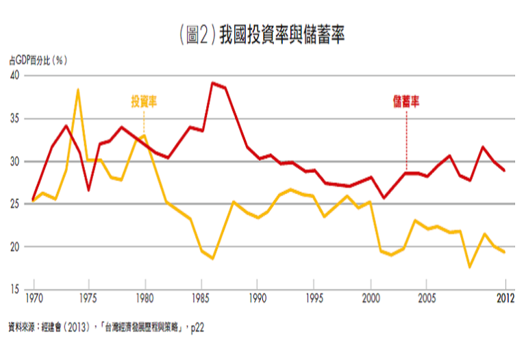 對照之下,在1970年代,我國公共投資占名目GDP的比率為12.8%,對經濟成長貢獻率達26%。但到2011∼2013年時,公共投資所占GDP比率僅剩4.4%,這樣的水準對照國際已屬偏低,再加上投資效率不彰的情況下,致使民眾逐步無感於政府的施政努力與決心。雖是如此,但台灣仍有極大的機會乘勢再起。尤其是因為近年經濟成長放緩而造成的超額儲蓄,以及目前基金操作報酬偏低的各種中長期資金,若得妥善運用,或能為當前的基礎建設發展突破瓶頸。