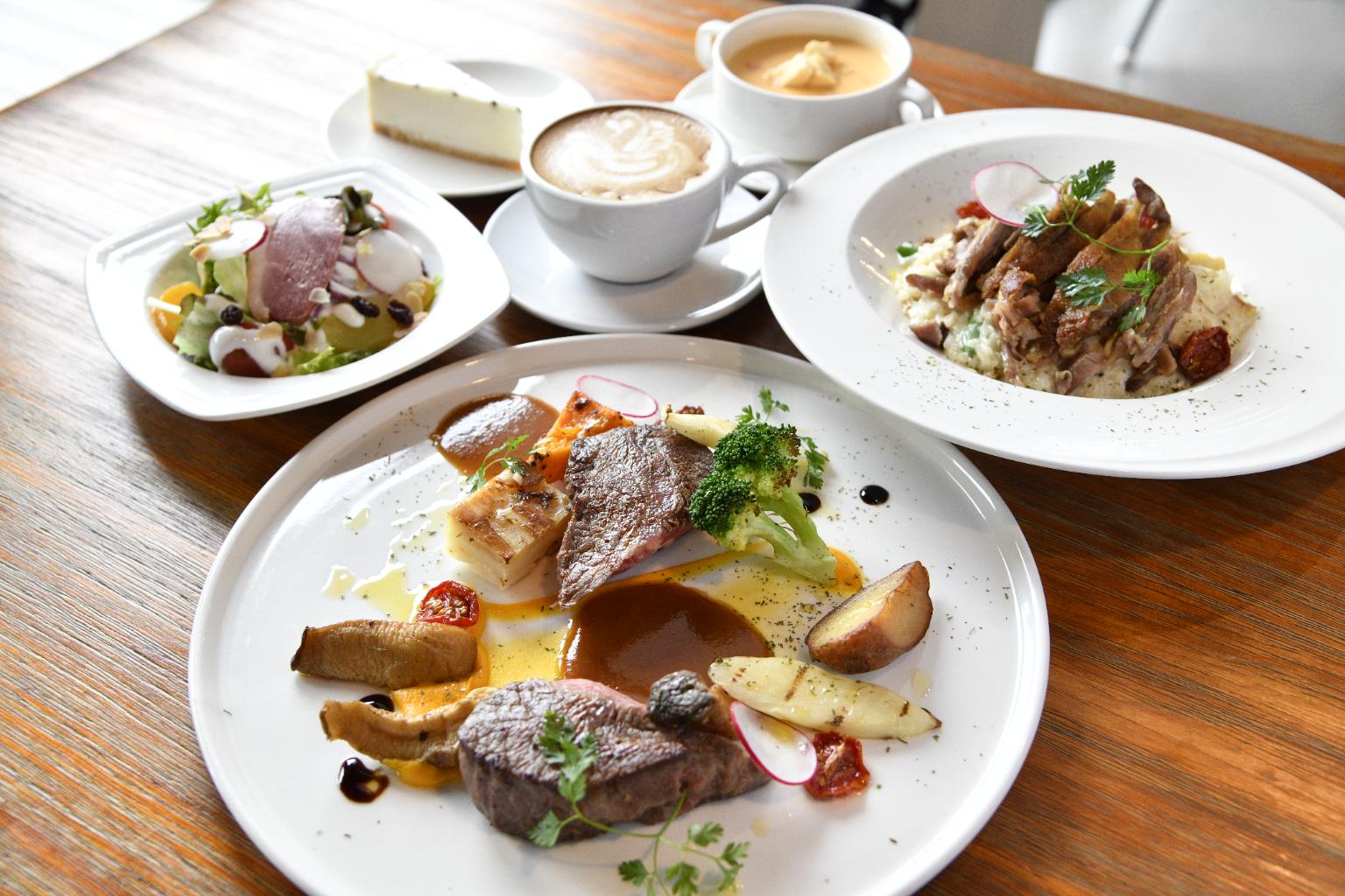 綠朵休閒農場有著3層樓高的餐廳建築,從遠處看過去,有如一台白色巨型鋼琴矗立,餐廳內部樓梯同步漆成黑白琴鍵造型,入口處放有大Size熊熊布偶,吸引不少大朋友、小朋友爭相拍照打卡!1樓腹地分成戶外用餐區及室內用餐區,戶外區放眼望去是偌大草地以及兒童遊戲區,內有小朋友最愛的沙坑,遊戲區設置於座位區不遠處,使家長能就近看顧、放心用餐讓孩童盡情玩耍。說到餐點,主廚簡俊平分享,自己相當認同「吃在地、食當季」的健康概念,「台灣本來就是食材的寶庫。」