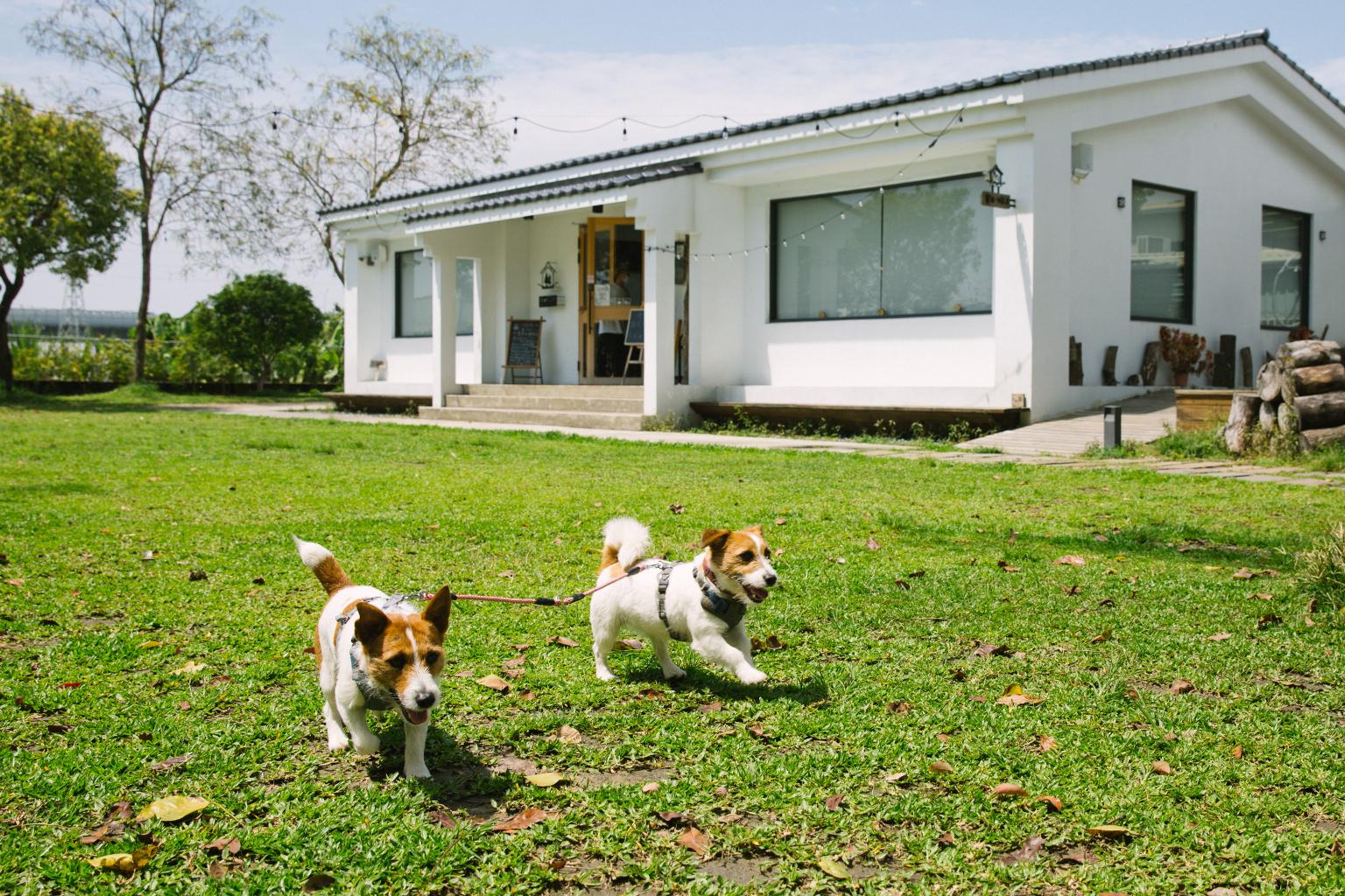 沿著草坪上的石板步道走去,一間白色復古風的日式房屋,是窩草的日子主要用餐區。餐廳提供兒童餐具以及餐桌椅,女廁裡設有尿布台。若是攜帶寵物,飼主需要自行準備推車或是寵物包,才可入內用用餐;若是大型寵物隨行,則需於戶外用餐。