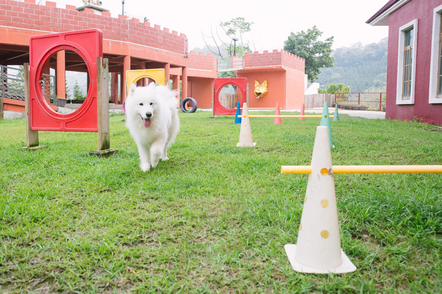若不想烤肉、野餐,可進到園區主建築——寵物皇宮裡的下午茶空間用餐,城堡外觀為顯眼大紅色,室內挑高,以紅、金色為主要顏色。牆上則掛創意畫作,除了狗狗的寫真畫像,還有以宮廷貴族為主題的作品,十分具有藝術氣息。
