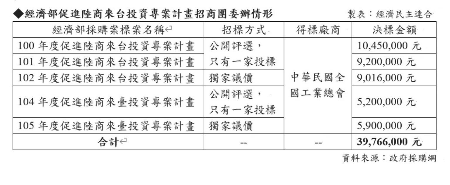 每年都是工總獨家得標,參訪中國還有經濟部官員隨行