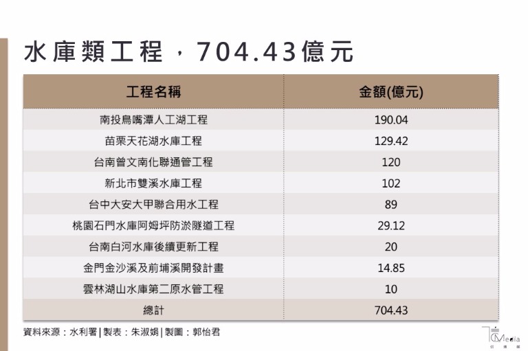 葉惠青則點名兩項跟新北市有關的工程。一是,「桃園石門水庫阿姆坪防淤隧道工程」,會把大量泥砂排入下游大漢溪,對生態影響很大。二是,「雙溪水庫」,用到的水系現在下游經常是乾的,而且旁邊有斷層,居民都很害怕。他質疑,過去開會時已表達過疑慮,但還是被放進去,並未跟地方好好溝通。