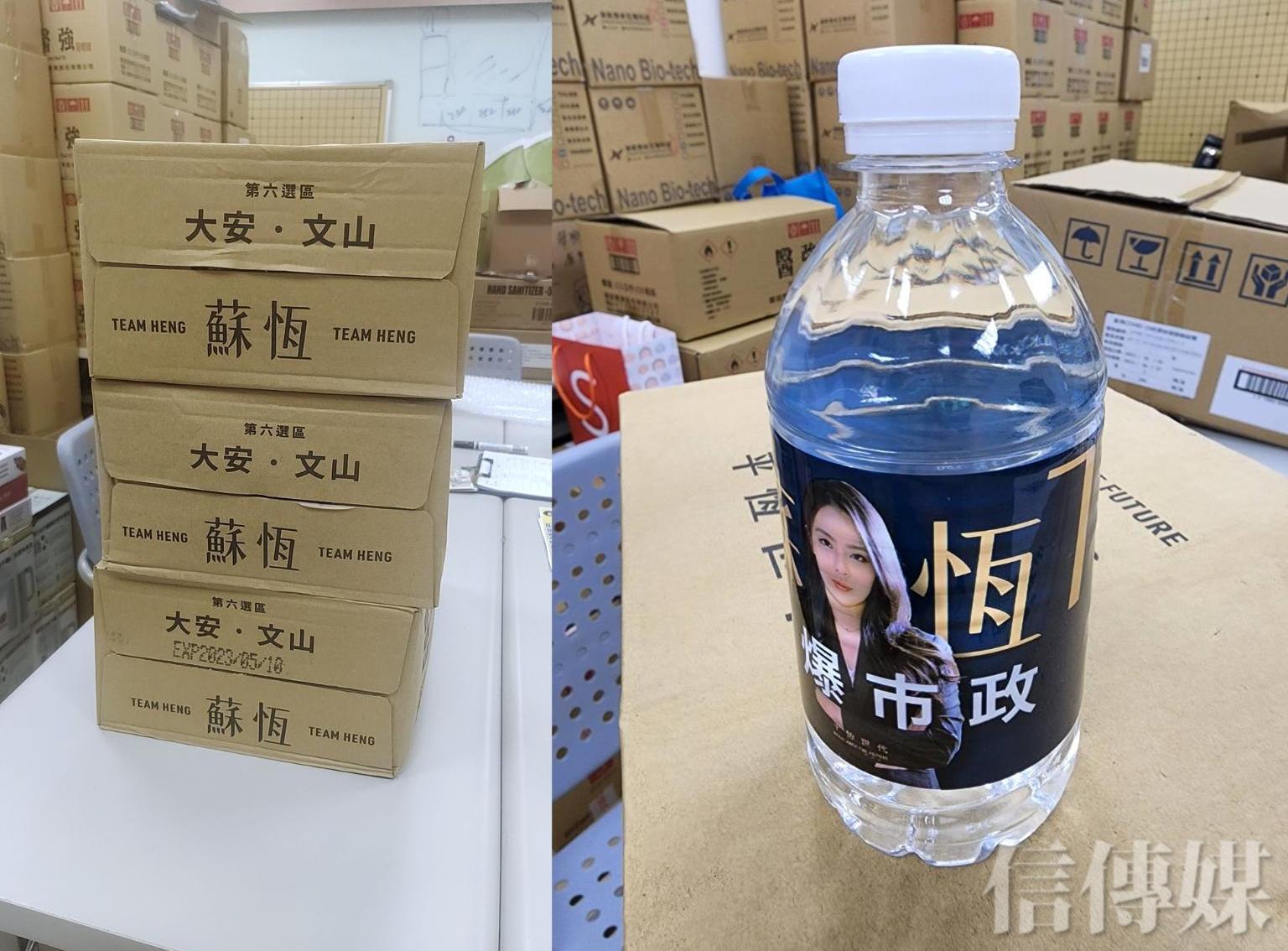 不只如此,地方人士亦指出,近期許多在地里長收到蘇恆寄送的許多瓶裝水,箱子外表印上「第六選區、大安文山、蘇恆」等字樣,瓶子上也印有精美文案。