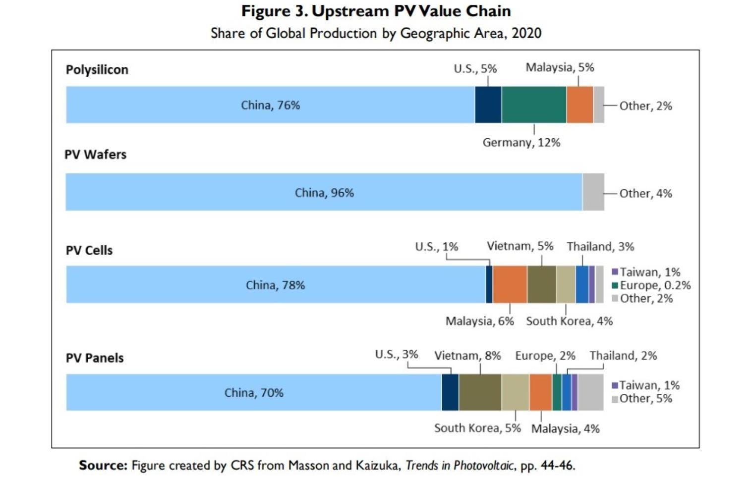 美國國會報告還指出,自2018年以來授予的豁免允許來自「中國和台灣以外國家」的一定數量的太陽能電池和模組以免關稅進口美國。