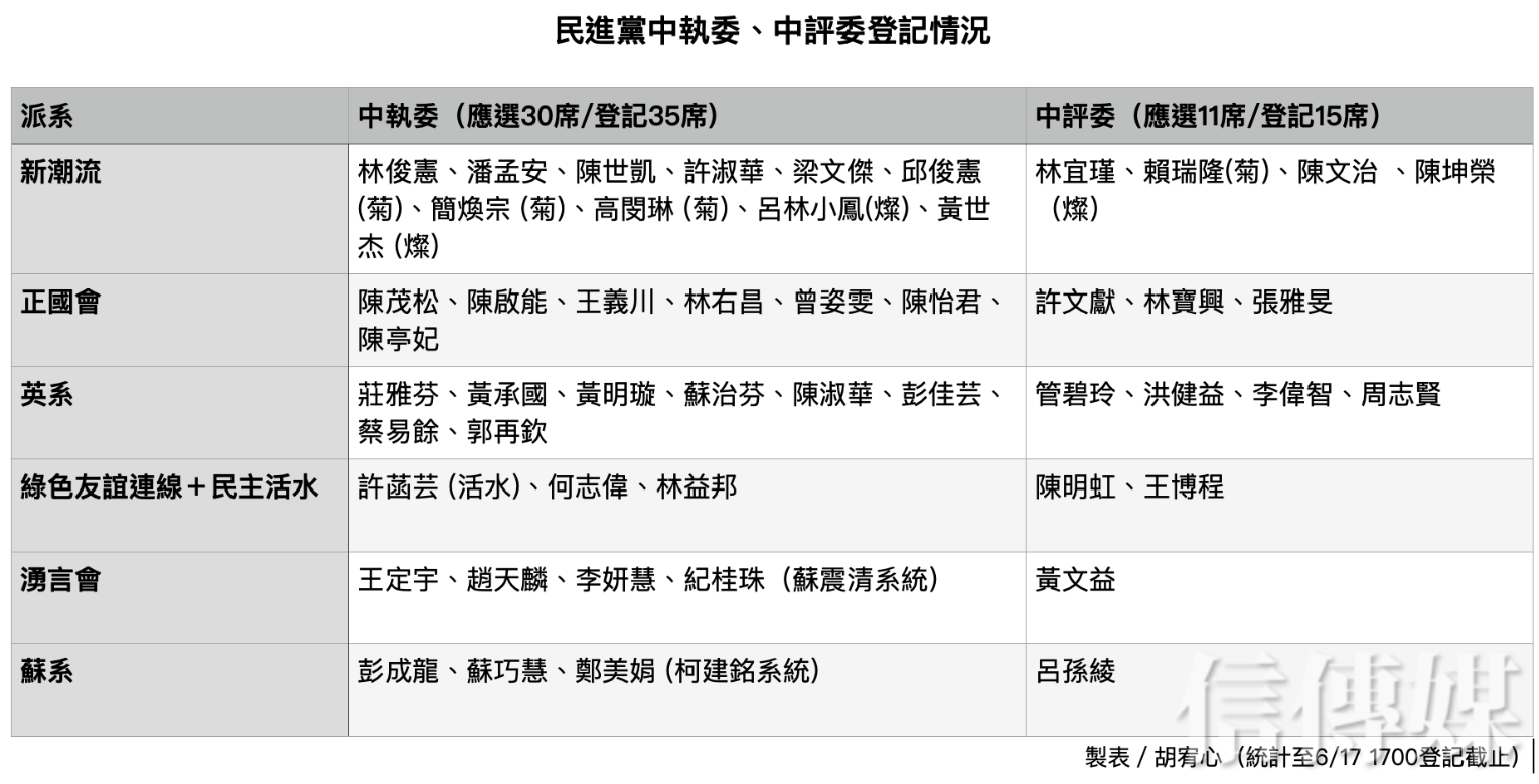 民進黨7月17日召開全國黨代表大會(全代會)選出11席中評委、30席中執委,中執委再互選,選出10席中常委,代表民進黨黨權核心,列席每週三的中常會,從中常委席次分佈也代表派系實力,而今年黨職改選,更攸關2024年總統提名初選,各派系磨刀霍霍,全力佈局。