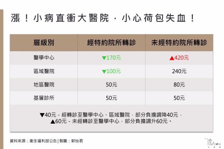 如果你只是小感冒、皮膚過敏等小病,沒有先到附近診所就醫就跑到大醫院如台大、榮總等掛號看診,或是小病跑到急診看診,那你的荷包鐵定要失血了!