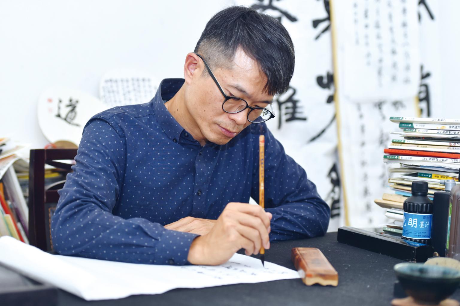 談起與書法的不解之緣,陳昭坤說,記得他小時候,住在龍山寺旁,龍山寺裡面有很多名家的書法。當時年紀小看不懂,但總覺得好看。印象中,龍山寺的兩側長廊經常舉辦全國名家書法展,書法家現場揮毫,旁邊有許多民眾圍觀,那時,覺得書法家好帥啊!就是從那時候開始,萌生了他想學習書法的念頭。