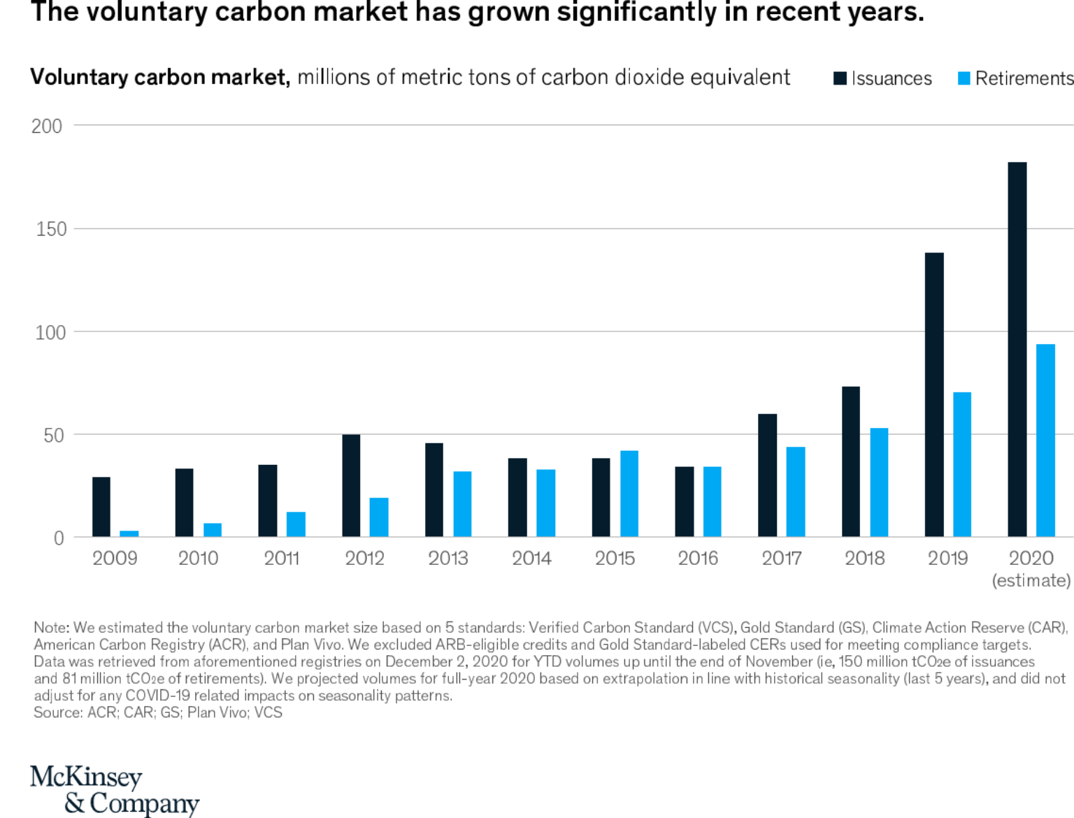 野生動物基金會(WWF)估計,國際自願性減碳的數量、金額都不多,但是其社會影響力是數百倍於其減碳的直接經濟效益,麥肯錫報告也指出,自願性減碳市場自2019年開始逐年增加。